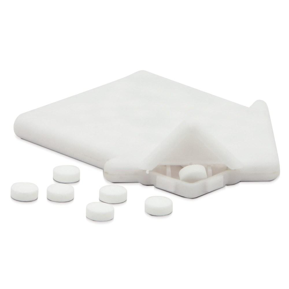 Ontdek dit originele pepermuntdoosje in de vorm van een huisje, perfect als gepersonaliseerd relatiegeschenk. Je opent het doosje makkelijk via de schoorsteen, wat voor een leuke verrassing zorgt bij je klanten of eventgasten.