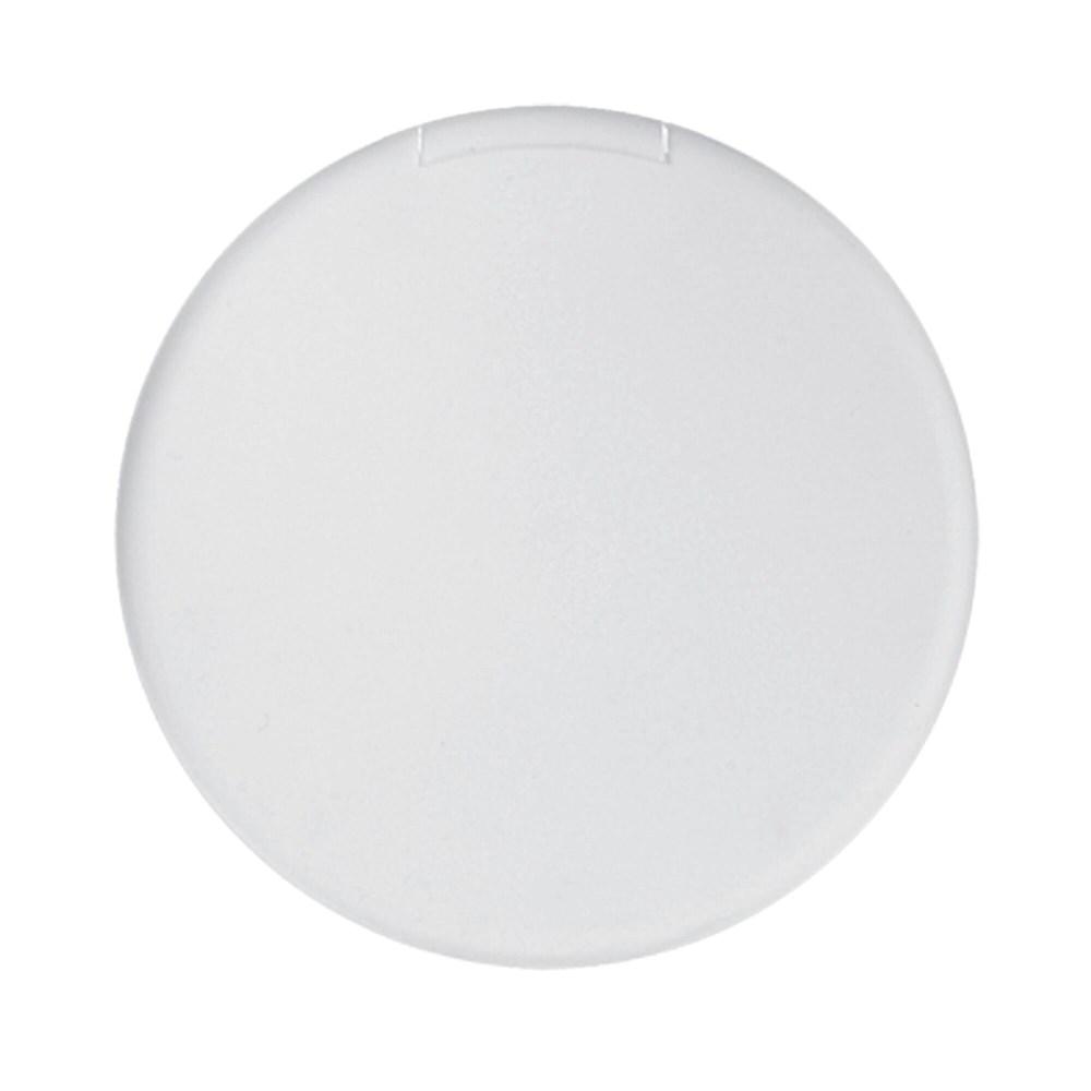 Rond en plat pepermuntdoosje. In gekleurd transparant of hardcolour wit. Inhoud: Circa 6,5 gram suikervrije pepermuntjes.