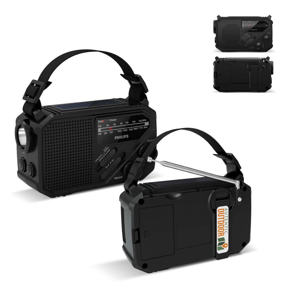 Ontdek de Philips TAR1609 noodradio: je ideale relatiegeschenk met logobedrukking voor events en promoties. Met fm/am-ontvangst, krachtige zaklamp en sos-alarm blijf je altijd verbonden en veilig. Laad op via zonne-energie, usb of handslinger – perfect voor stroomuitval, kamperen of noodsituaties.