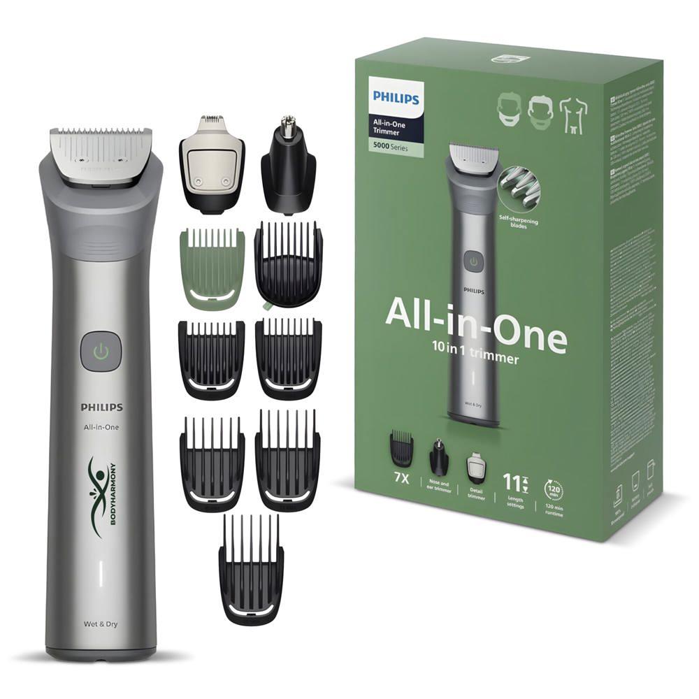 Perfectioneer je grooming routine met deze veelzijdige 10-in-1 trimmer, ideaal als gepersonaliseerd relatiegeschenk. Je krijgt precieze snedes dankzij de DualCut-mesjes, een stevige antisliphandgreep en huidvriendelijk ontwerp. Trim moeiteloos je baard, neus, oren en meer. Eenvoudig schoon te maken en compact om mee te nemen.