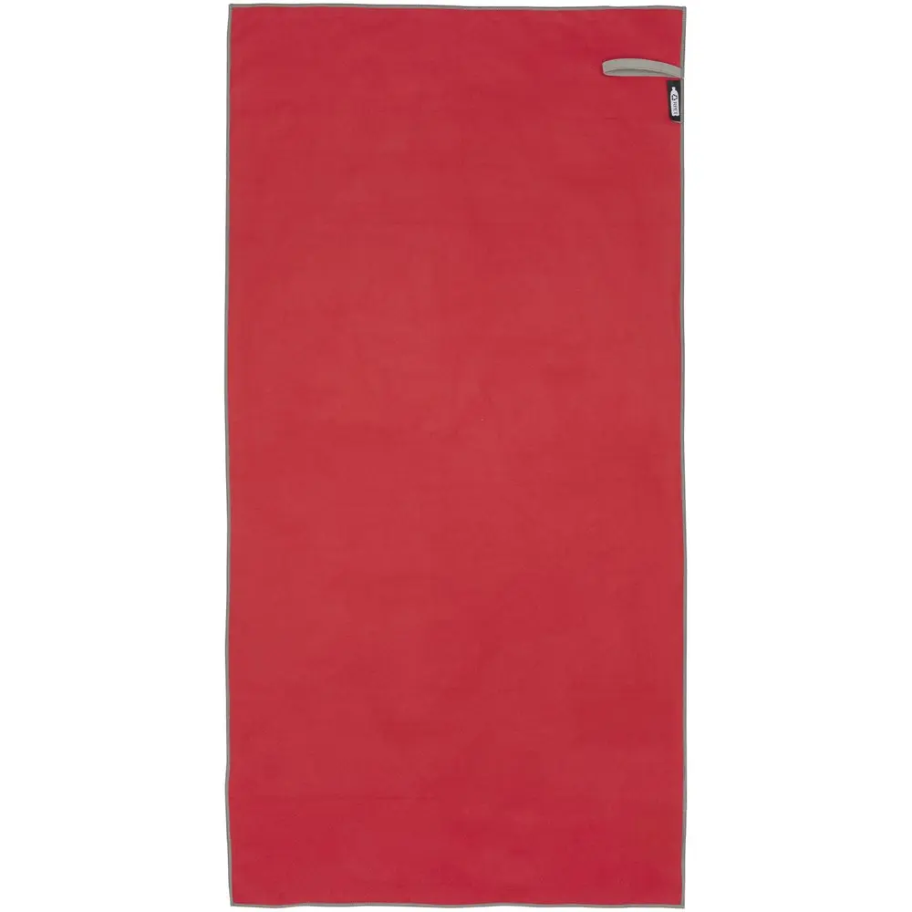 De Pieter ultralichte en sneldrogende handdoek is ideaal als gepersonaliseerd relatiegeschenk voor uw marketingacties of events. Met zijn superabsorberende eigenschappen, lichte gewicht en razendsnelle droogtijd biedt deze handdoek van 50 x 100 cm optimaal comfort tijdens sport, zwemmen of reizen. De duurzame, zachte stof – samengesteld uit 90% GRS-gerecycled polyester en 10% nylon met 200 g/m² – gaat lang mee en is machinewasbaar op 40 °C, wat hygiëne garandeert voor herhaald gebruik.