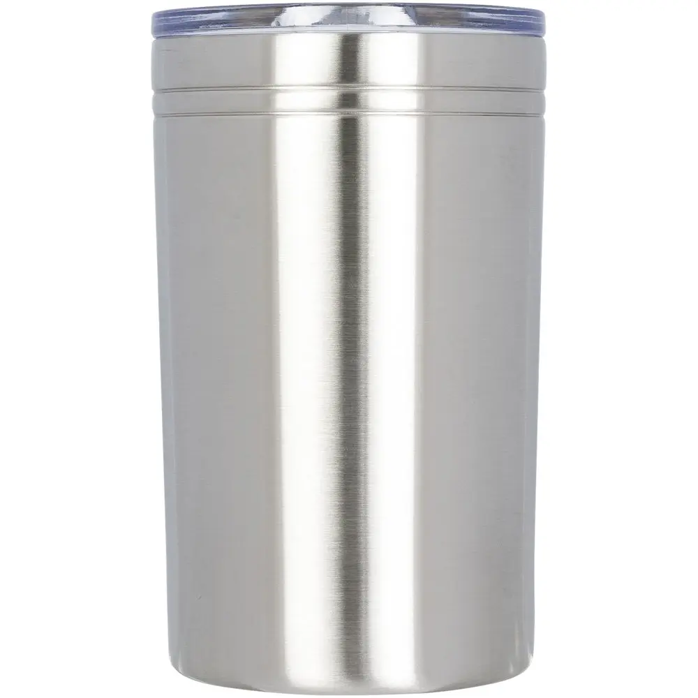 De Pika 330 ml vacuüm geïsoleerde beker en koeler biedt uw merk een stijlvolle en praktische manier om indruk te maken op klanten en relaties. Met een dubbelwandige roestvrijstalen constructie en vacuümisolatie blijft uw drankje urenlang koud of warm, ideaal voor events, promoties of dagelijkse gebruik. Het doorzichtige drukdeksel met schuifsluiting voorkomt morsen en zorgt voor hygiëne. Multifunctioneel inzetbaar als beker of isolator voor flessen, stimuleert dit relatiegeschenk herhaalde blootstelling aan uw logo via persoonlijke bedrukking. Afmetingen: 13,5 x Ø 8,5 cm. Perfect voor grootschalige bestellingen om uw merk zichtbaar te houden.