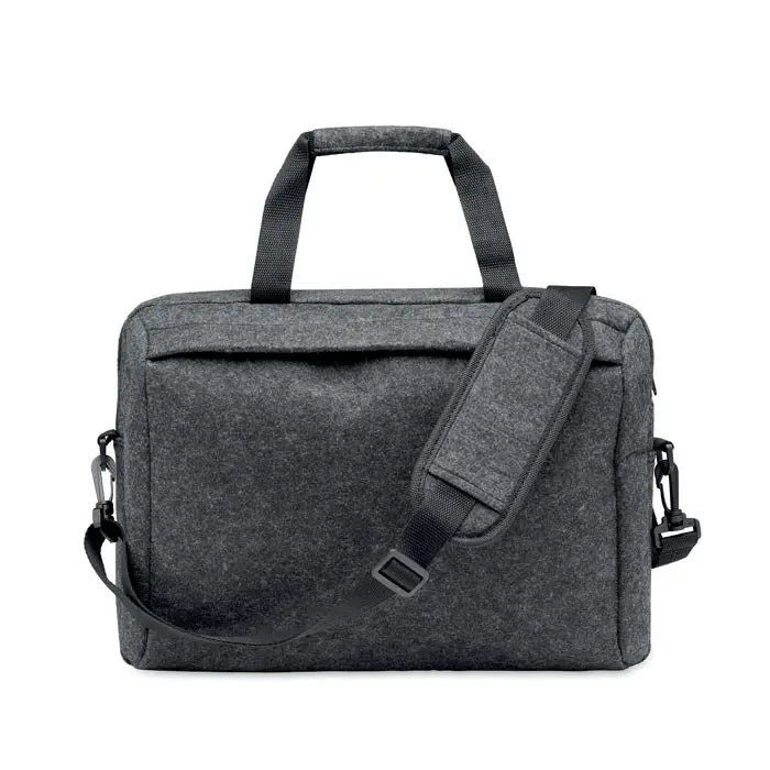 Ontdek de PLANA 15 inch vilten laptoptas, vervaardigd uit duurzame RPET-vilt voor een milieuvriendelijke keuze. Deze laptoptas biedt optimale bescherming voor uw 15 inch laptop met een ruim hoofdcompartiment en een handig voorvak met rits voor accessoires. De afneembare, verstelbare schouderriem zorgt voor comfortabel dragen, terwijl de trolleyhouder aan de achterzijde naadloos aansluit bij zakenreizen.