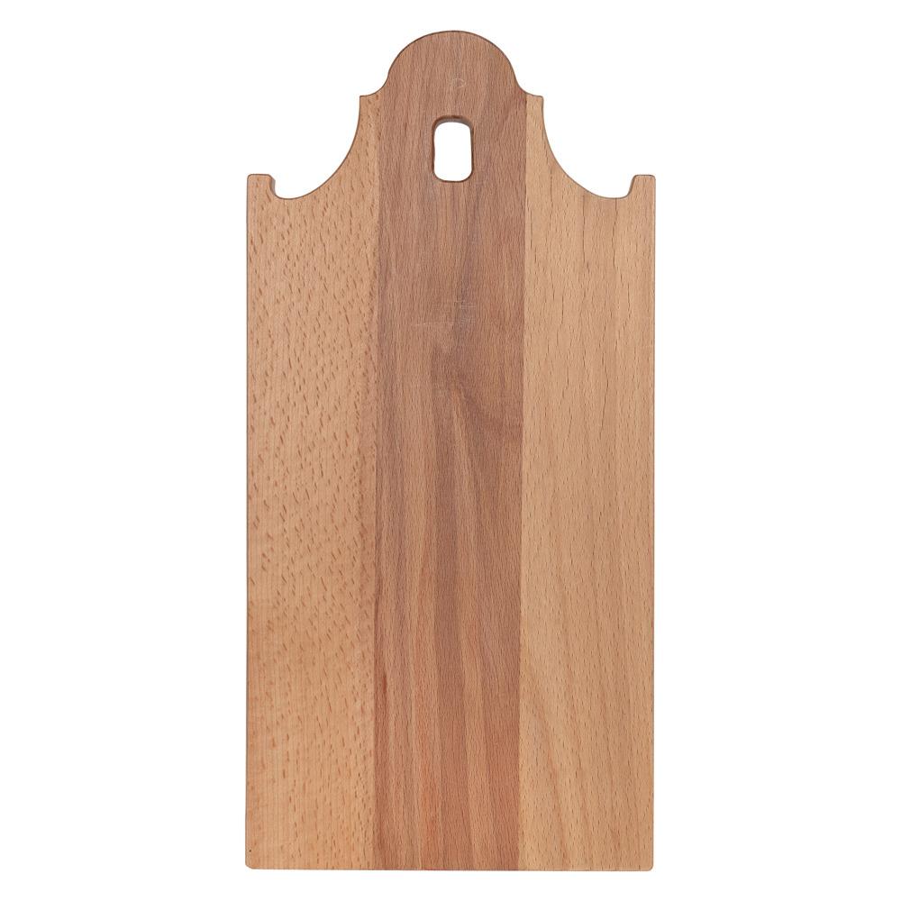 Het beukenhout is een sterke en duurzame houtsoort die vaak wordt gebruikt voor het maken van meubels en decoratieve items. Het hout heeft een lichtbruine kleur met een fijne nerf, wat het een elegant en klassiek uiterlijk geeft. Door de vorm van het klokgevelhuisje heeft de plank een nostalgische uitstraling die doet denken aan oude Engelse herenhuizen en historische gebouwen.