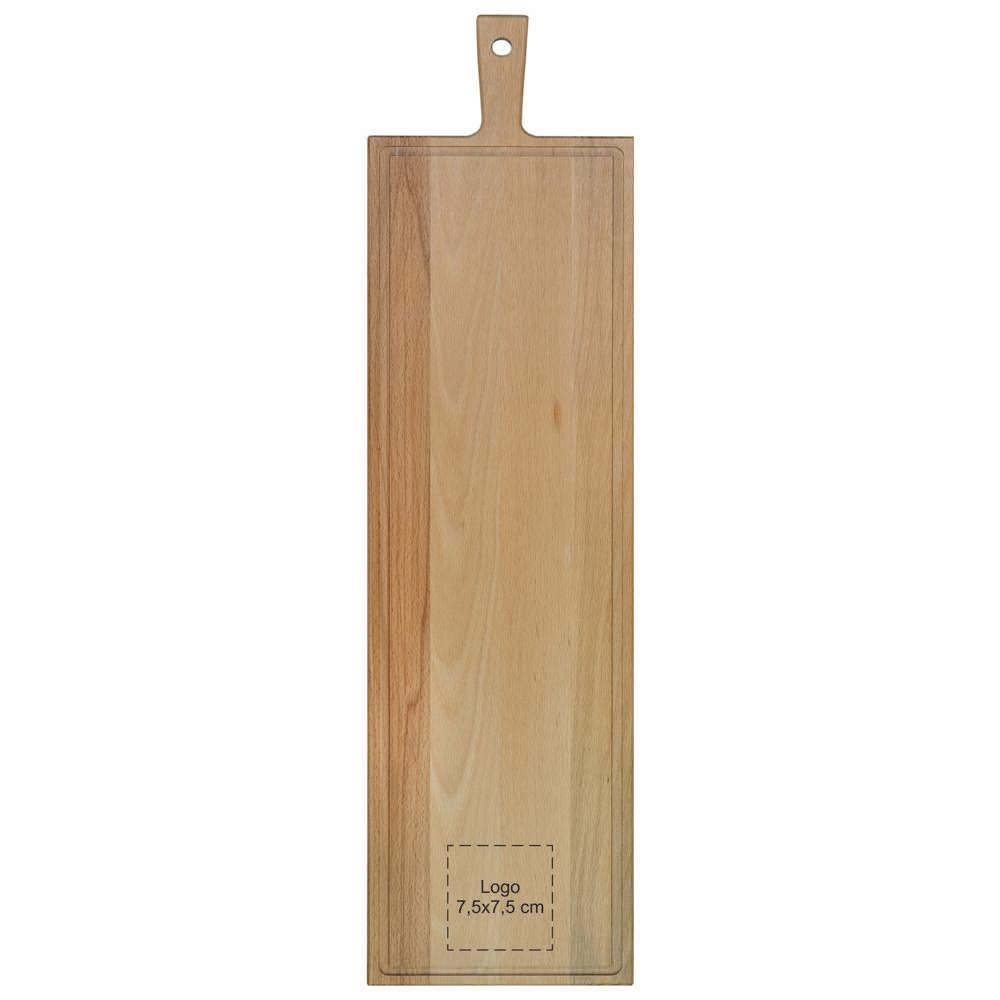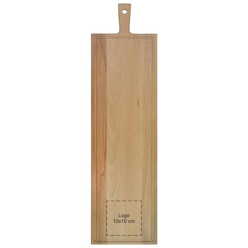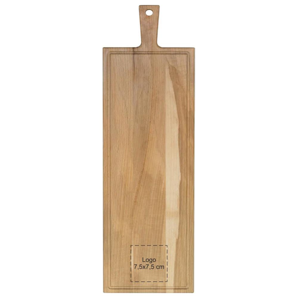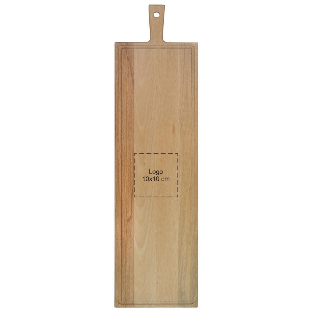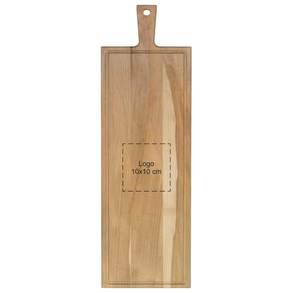 Ontdek de beuken serveerplank met handvat en sapgeul, ideaal als gepersonaliseerd relatiegeschenk voor jouw events of marketingacties. Met afmetingen van 33 bij 16 cm heb je genoeg ruimte om kazen, vleeswaren, fruit of brood stijlvol te presenteren aan je klanten.