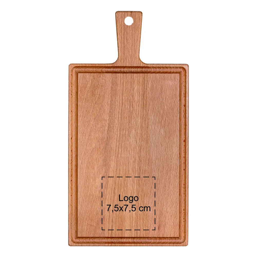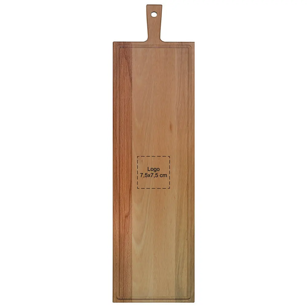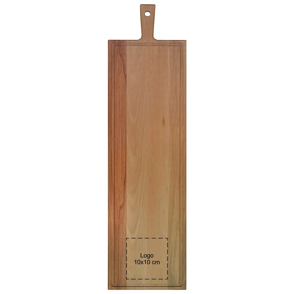 Dankzij het robuuste beukenhout is deze plank bestand tegen intensief gebruik en behoudt het zijn elegante uitstraling. Gebruik het voor dagelijkse maaltijden of als eyecatcher tijdens zakelijke bijeenkomsten. Het combineert functionaliteit met esthetiek, waardoor het een waardevolle toevoeging is aan uw assortiment relatiegeschenken.