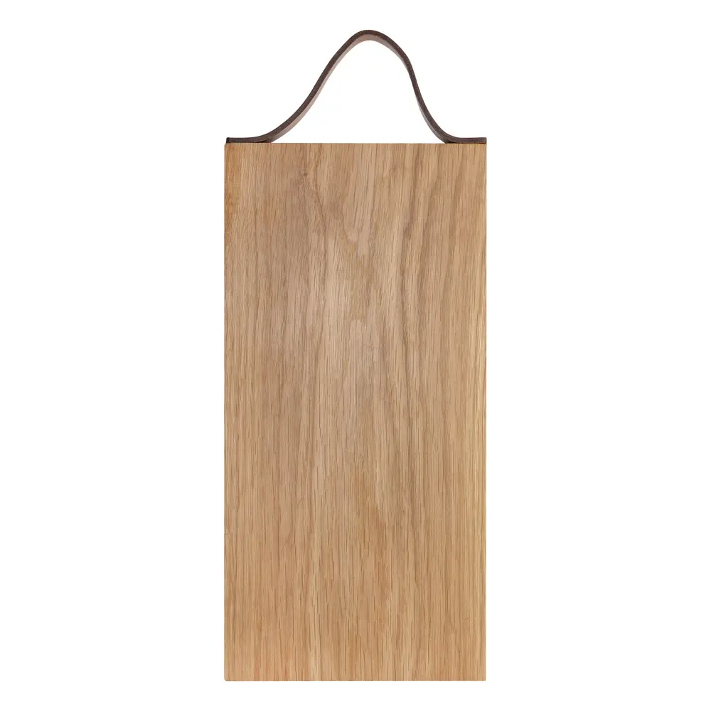 De plank bestaat uit eikenhout, een bio-duurzaam materiaal dat stevigheid en lange levensduur garandeert. Het full grain lederen handvat voegt een luxueuze touch toe met comfortabele grip. Dit ontwerp combineert functionaliteit met een warme, natuurlijke uitstraling, ideaal voor zowel casual als formele gelegenheden.