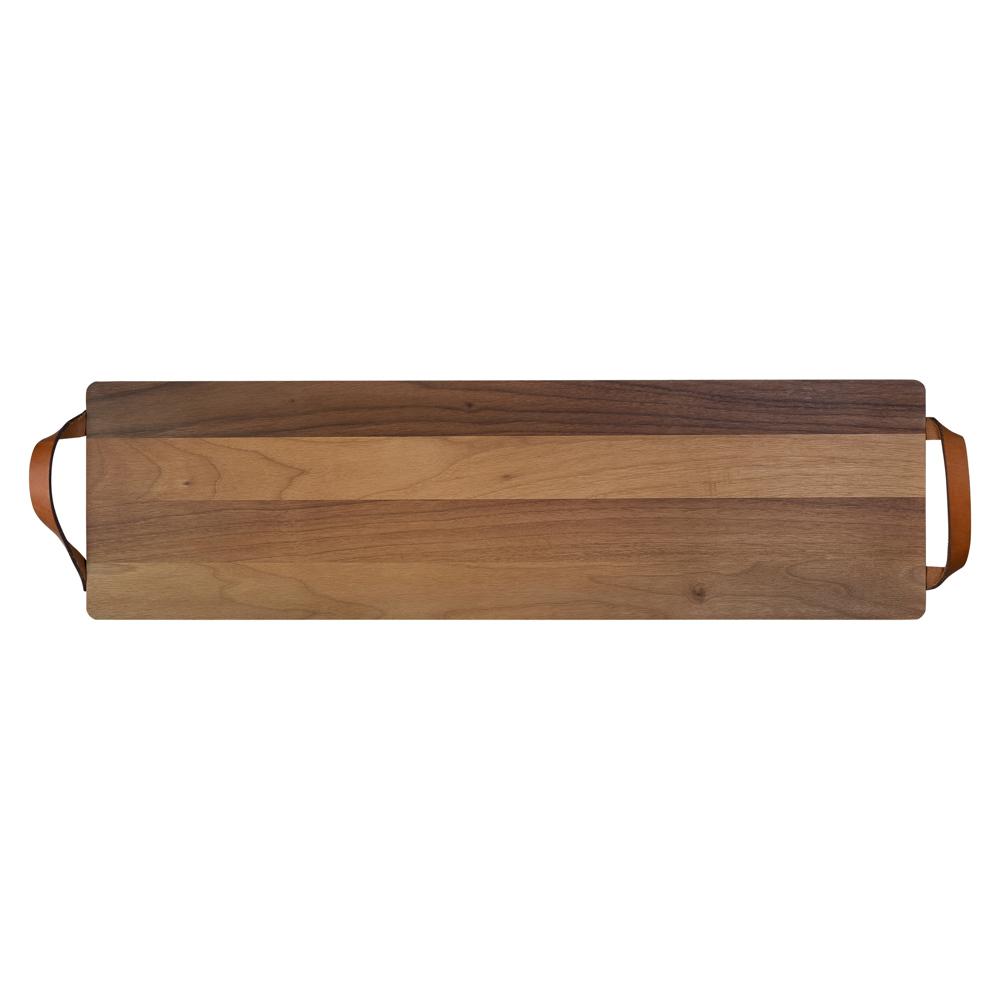 Plank met leren handvaten walnoot