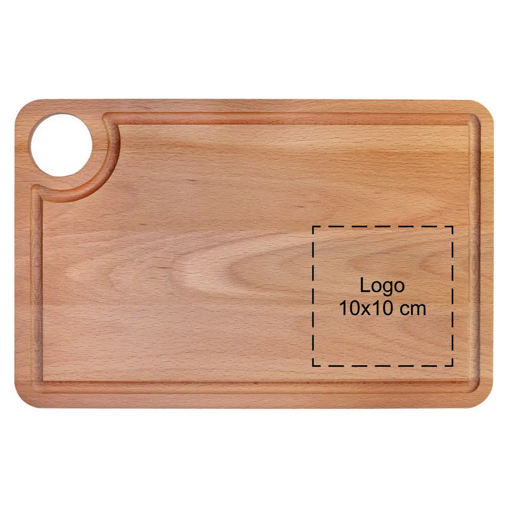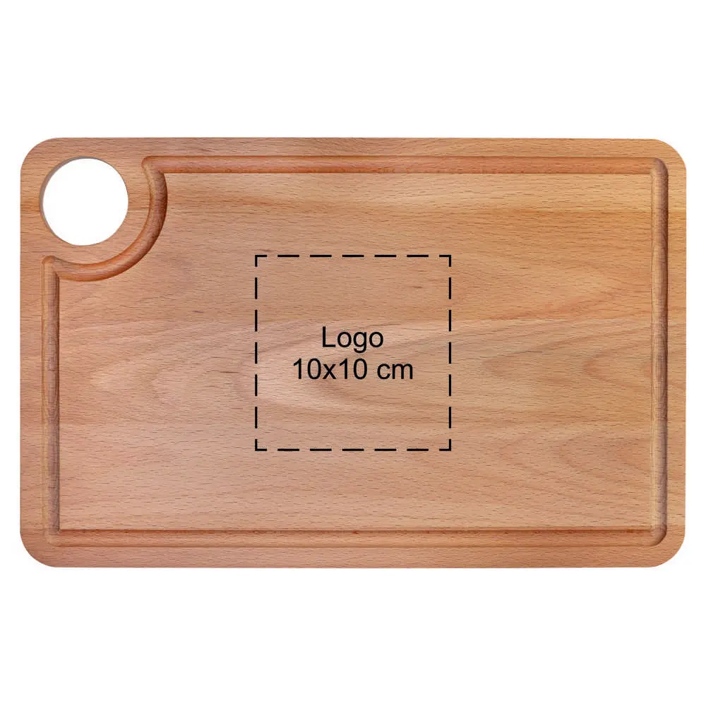 Ontdek onze beuken serveerplank met sapgeul en handvat, ideaal als gepersonaliseerd relatiegeschenk voor uw bedrijf. Met afmetingen van 34 x 22 cm biedt deze plank ruim voldoende plaats om kazen, vleeswaren, fruit of brood stijlvol te presenteren tijdens events of als reclame-uitdelingsitem.