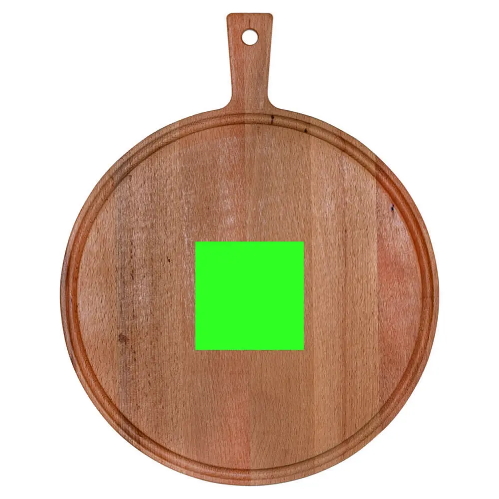 Het handvat zorgt voor een veilige grip en eenvoudige presentatie, terwijl de ronde vorm multifunctioneel is voor diverse gerechten. Onderhoud is eenvoudig: reinig met een vochtige doek en milde zeep, droog af en behandel occasioneel met houtolie voor langere levensduur. Zo blijft uw gepersonaliseerde plank altijd in topconditie, klaar voor herhaald gebruik als reclame- of dankgeschenk.