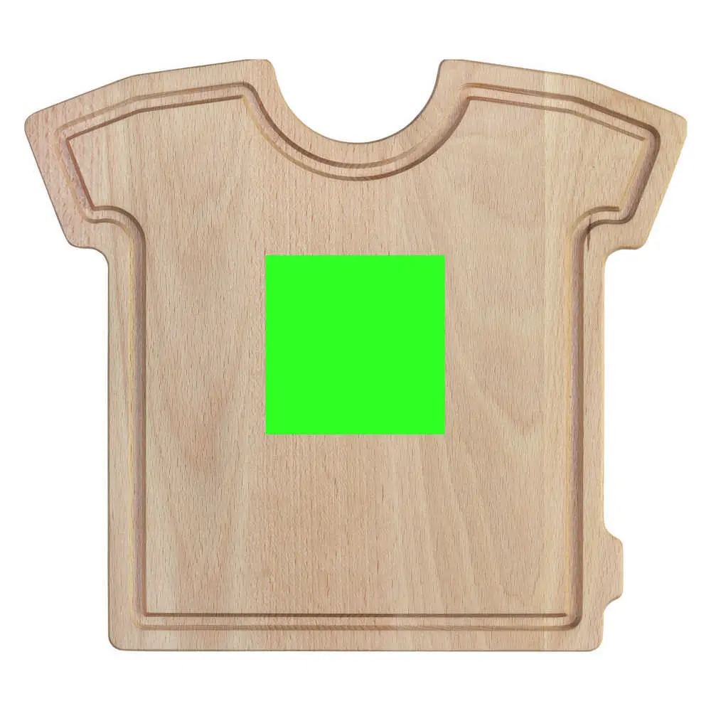 Ontdek de gepersonaliseerde beuken serveerplank in T-shirt vorm, een origineel relatiegeschenk voor uw marketingcampagnes en events. Gemaakt van kwalitatief beukenhout (25x28 cm), serveert u hapjes zoals kaas, vleeswaren of fruit op een creatieve manier met ronde hals en korte mouwen.