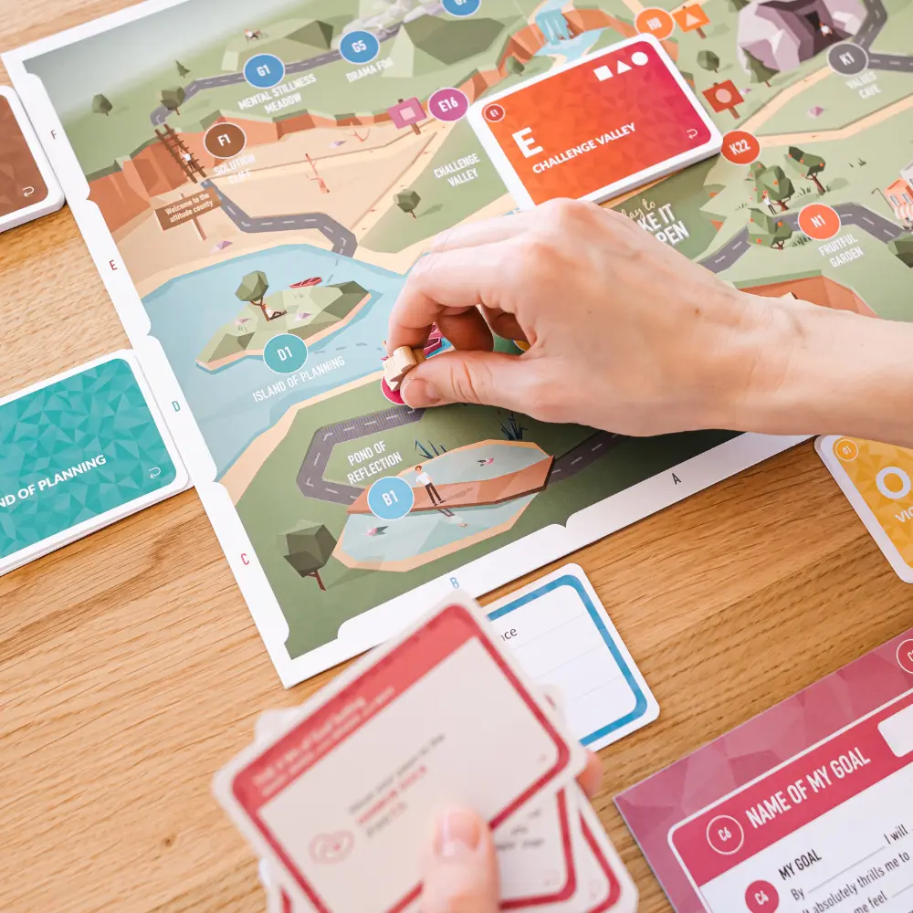 Het bordspel leidt u op een gestructureerde reis door thema's van doelgericht werken. Elke halte behandelt een specifiek aspect, zoals motivatie en planning. In ongeveer twee uur creëert u een volledig actieplan, inclusief psychologische tools om gemotiveerd te blijven. Het spel is speels en boeiend, wat toekomstplanning aantrekkelijk maakt voor teams en individuen.