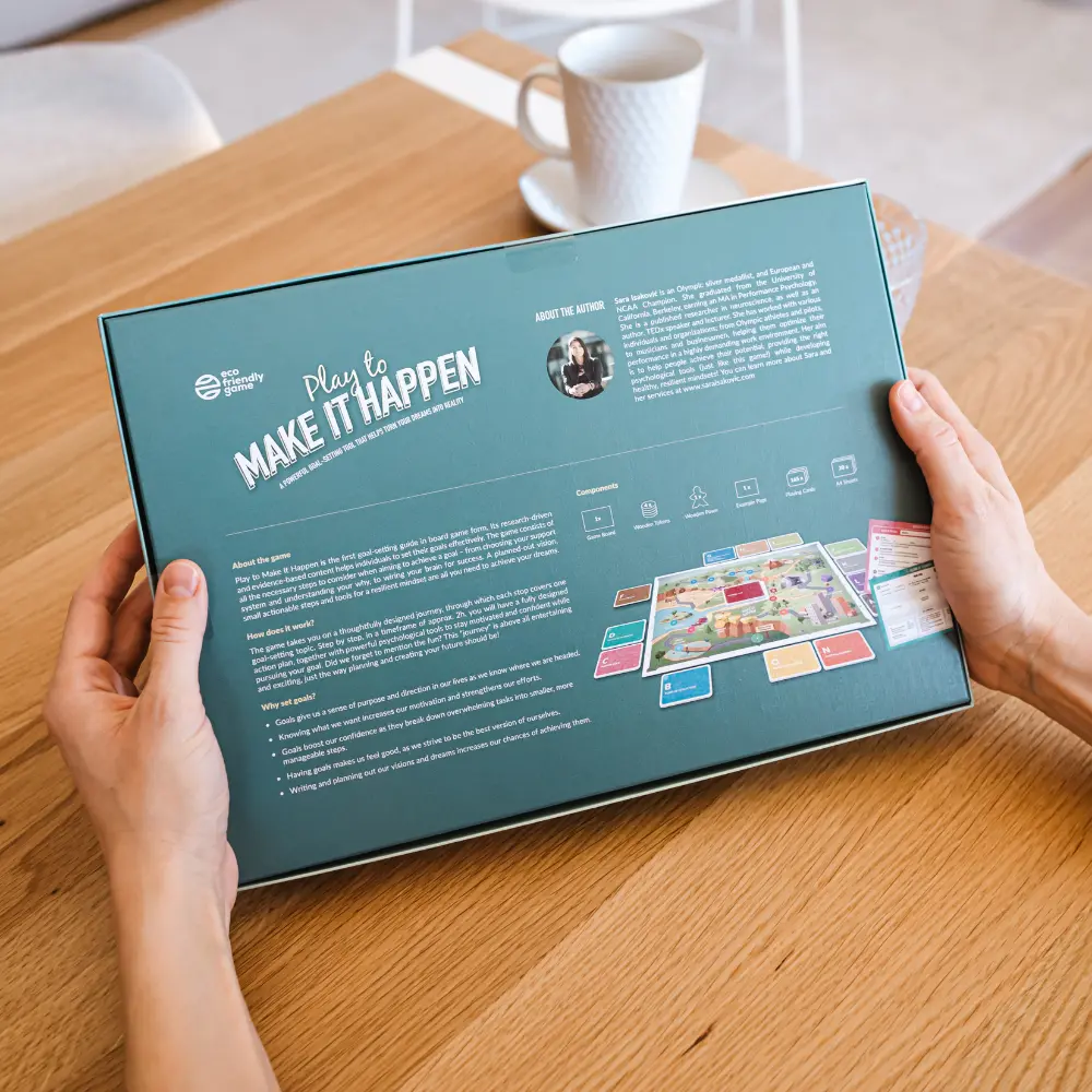 - Naam product: Play To Make It Happen – Doelen stellen bordspel