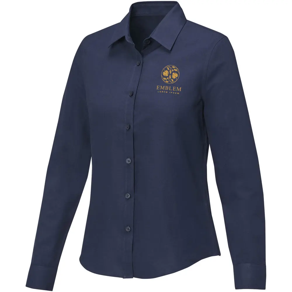 Ontdek het Pollux damesoverhemd met lange mouwen, ideaal als gepersonaliseerd relatiegeschenk voor uw bedrijf. Gemaakt van robuuste Oxford-stof met 55% katoen en 45% polyester (130 g/m²), biedt dit overhemd kreukherstellende eigenschappen voor een professionele uitstraling, gecombineerd met lichtgewicht comfort en een zachte touch. De subtiele rugplooi en brandingopties aan de binnenzijde maken personalisatie met uw logo eenvoudig en elegant. Het afscheurbare label zorgt voor tagless draagcomfort, terwijl de getailleerde pasvorm een vrouwelijke silhouette benadrukt. Perfect voor events of als reclame-uitdeel, versterkt dit overhemd uw merk bij klanten en partners.