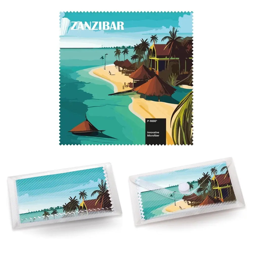 Het doekje komt in een praktisch polypropyleen etui met klittenbandsluiting, perfect om mee te nemen in tas of zak. Wasbaar tot 30 °C, behoudt het langdurig zijn functionaliteit. Personaliseer met uw motief, foto of ontwerp in digitale opdruk – een slimme manier om uw doelgroep te bereiken en loyaliteit op te bouwen.