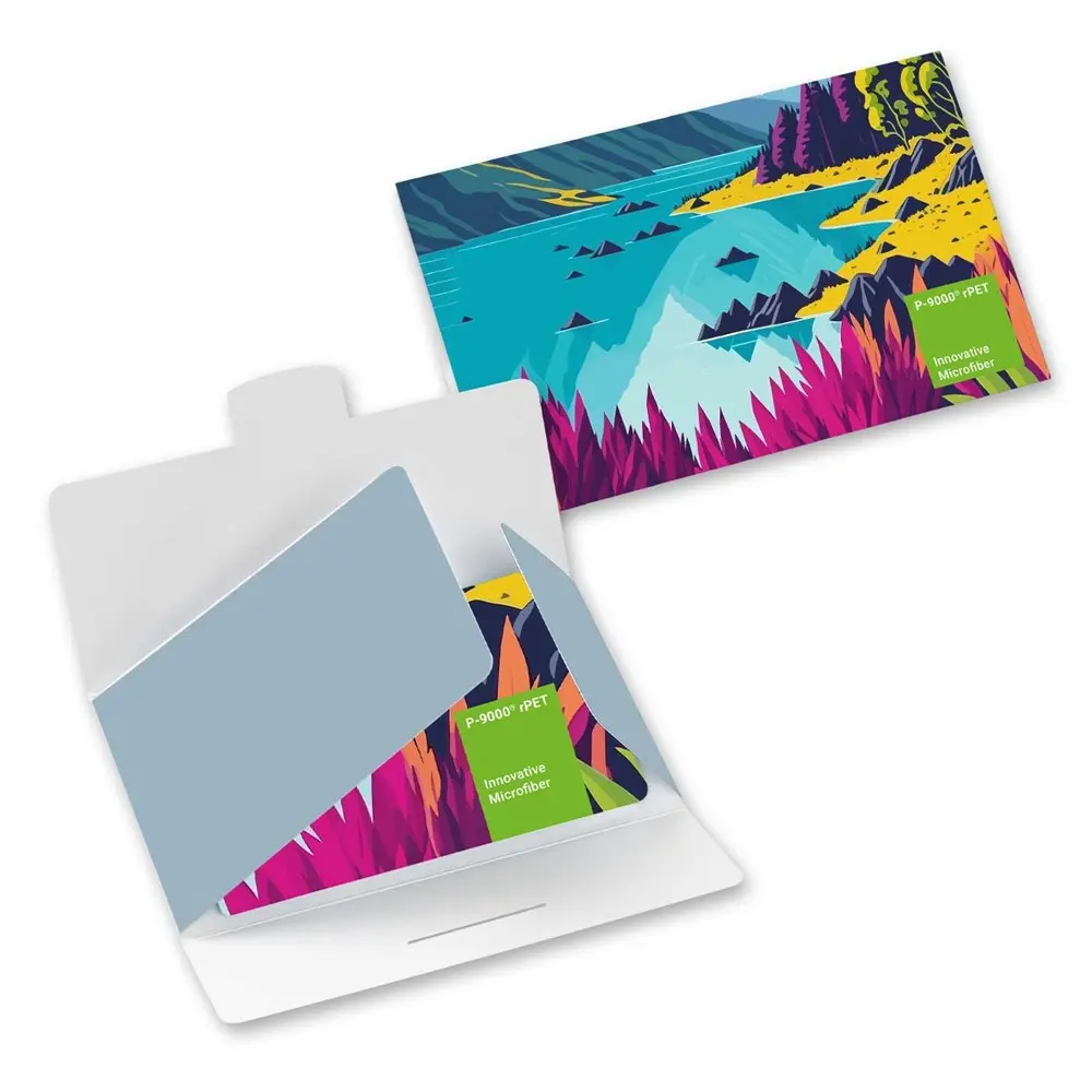 Ontdek onze gepersonaliseerde displaydoekjes van gerecyclede P-9000® microvezels, ideaal als duurzame relatiegeschenken voor uw marketingacties of events. Deze doekjes van 18 x 15 cm reinigen smartphones, tablets, monitoren en touchscreens moeiteloos, en verwijderen vingerafdrukken en vettige sporen zonder chemicaliën of strepen. Gemaakt van 70% gerecycled polyester en 30% polyamide (250 g/m²), bieden ze een milieuvriendelijke oplossing die wasbaar is tot 30°C, perfect voor herhaald gebruik.