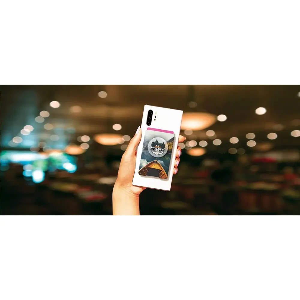 De PopWallet+ fungeert als stevige kunststof kaarthouder voor maximaal drie betaalkaarten of circa zes visitekaartjes. Bevestig deze aan de achterkant van uw telefoon voor directe toegang tot uw betaalmiddelen, zonder extra bagage. Dit accessoire bevordert een efficiënte workflow tijdens events of zakenreizen, terwijl het uw merk subtiel promoot bij elke interactie.