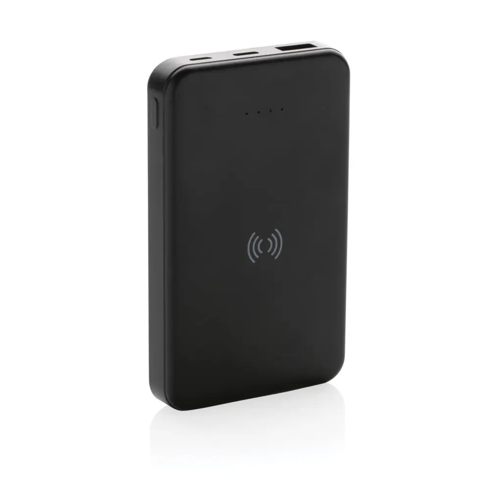 Ontdek onze duurzame powerbank met draadloos laden van 5.000 mAh, ideaal voor uw marketingacties en events. Deze compacte pocket powerbank, gemaakt van RCS-gecertificeerd gerecycled ABS-plastic met 26% gerecycled materiaal, biedt milieuvriendelijke promotie zonder compromis op functionaliteit. Laad uw smartphone tot twee keer op met de krachtige grade A lithium-polymeerbatterij en geniet van handige vermogensindicatoren voor altijd overzicht.