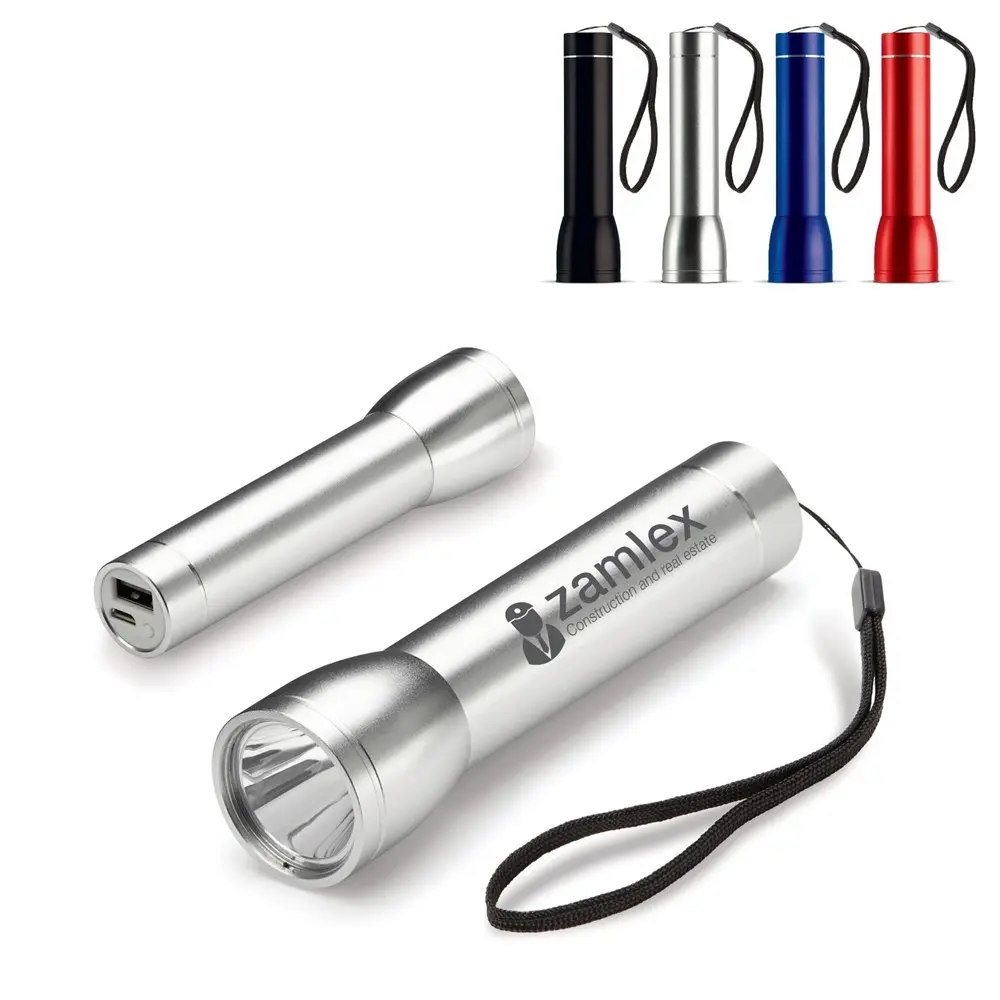 Ontdek deze aluminium zaklamp met geïntegreerde powerbank van 2200mAh, een ideaal hulpmiddel voor uw dagelijkse behoeften. Deze compacte gadget combineert verlichting met opladen in één handig apparaat, perfect voor marketingacties en events.