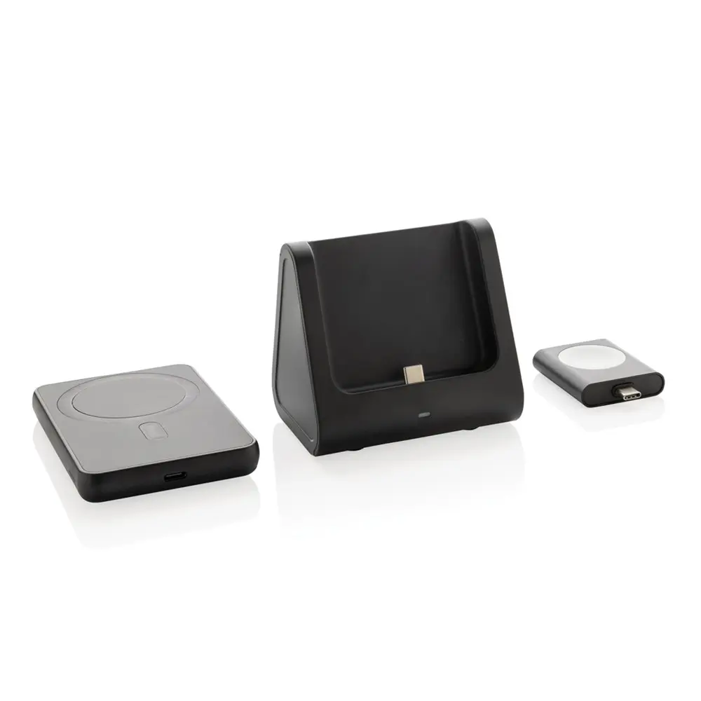 Met deze oplader profiteert u van een naadloze integratie van functionaliteit en duurzaamheid. Thuis of op kantoor plaatst u eenvoudig uw telefoon, oordopjes of smartwatch op de standaard voor draadloos opladen. Onderweg haalt u de magnetische powerbank uit het dock en bevestigt u hem direct op uw apparaat. Dit bespaart tijd en biedt gemak tijdens vergaderingen of reizen.