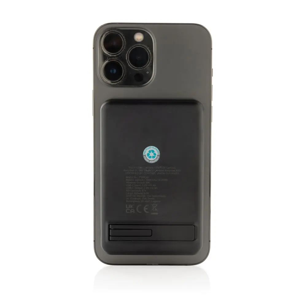 Ontdek de Powerbase 3-in-1 draadloze oplader met powerbank-dock, vervaardigd uit RCS-gecertificeerd gerecycled ABS en PC-materiaal voor een duurzame keuze. Met 59% gerecycled materiaal voldoet dit product aan strenge milieunormen en biedt het een volledig gecertificeerde toeleveringsketen.