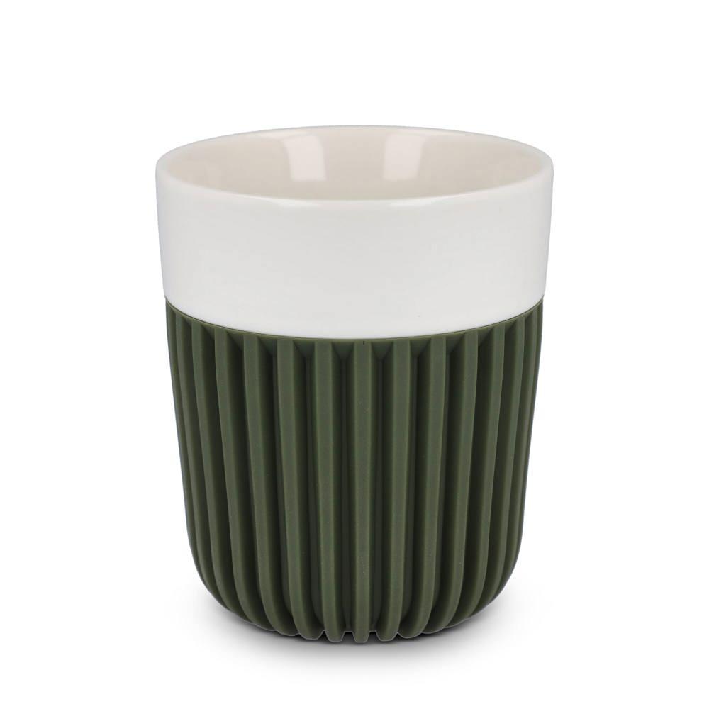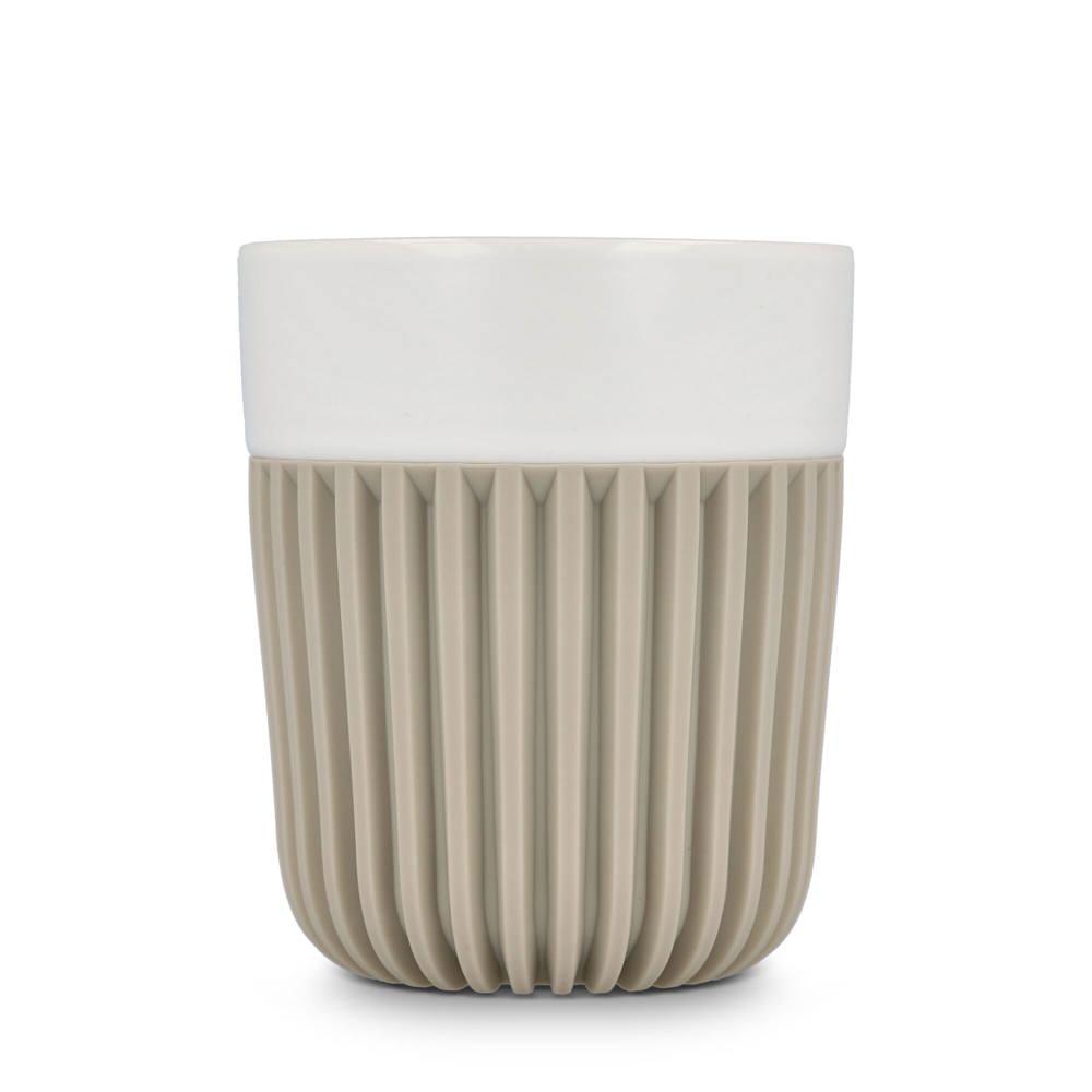 Ontdek de premium mok Fjord van 280 ml, perfect voor jouw marketingacties en events. Gemaakt van hoogwaardig New Bone China met een exclusieve geribbelde siliconen sleeve die warmte en koude isoleert en de mok beschermt tegen stoten. Ontworpen door designer Andy Cartwright, straalt deze elegante mok pure luxe uit en past perfect onder de meeste koffiezetapparaten (diameter 85 mm).