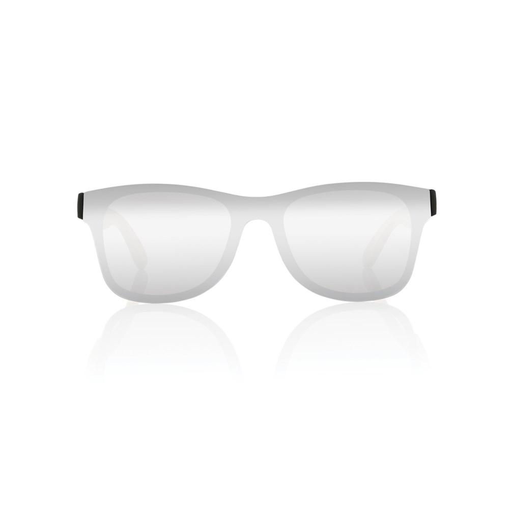 De gespiegelde glazen geven een trendy look en bieden topbescherming: conform EN ISO 12312-1, UV400 en CAT3. PVC-vrij en verpakt in een FSC-kraftdoos, klaar voor bedrukking met jouw logo via personalisatietechnieken.