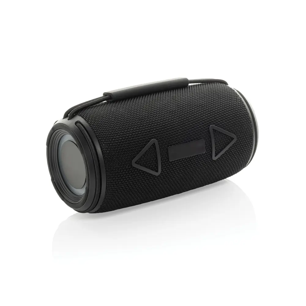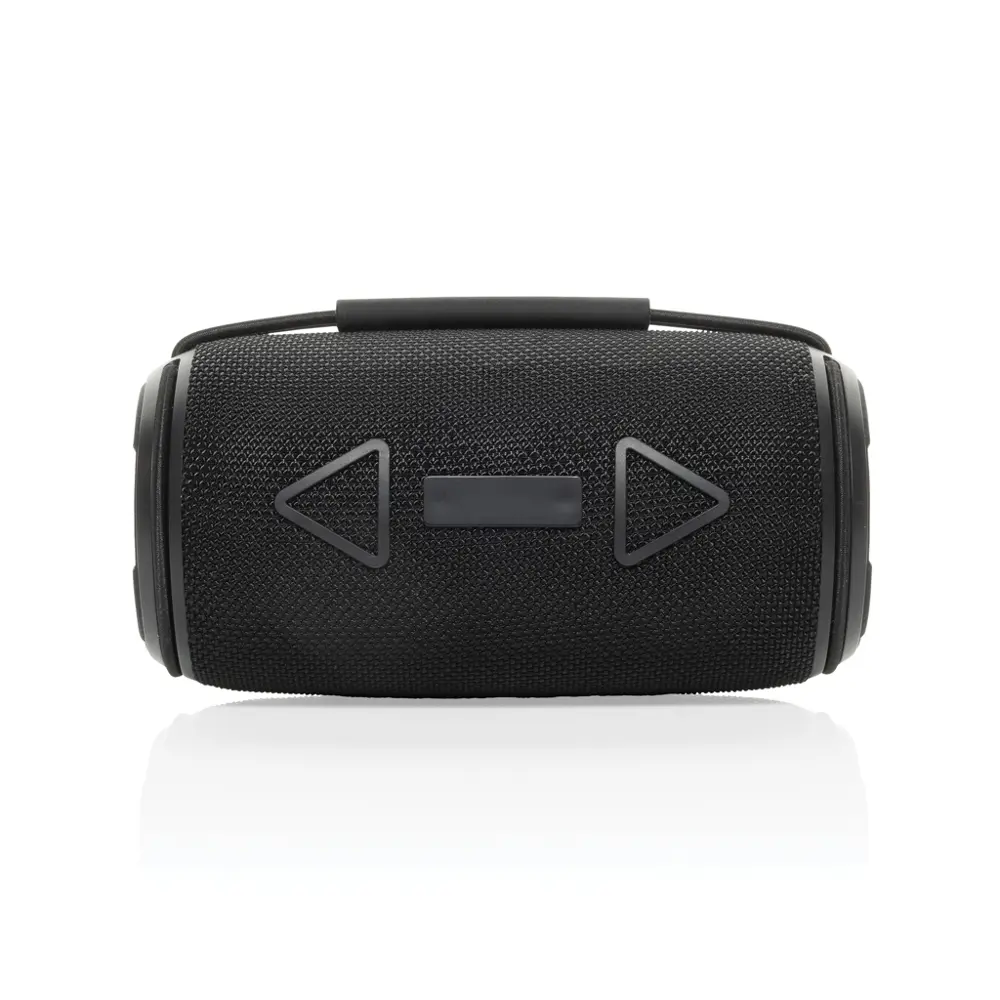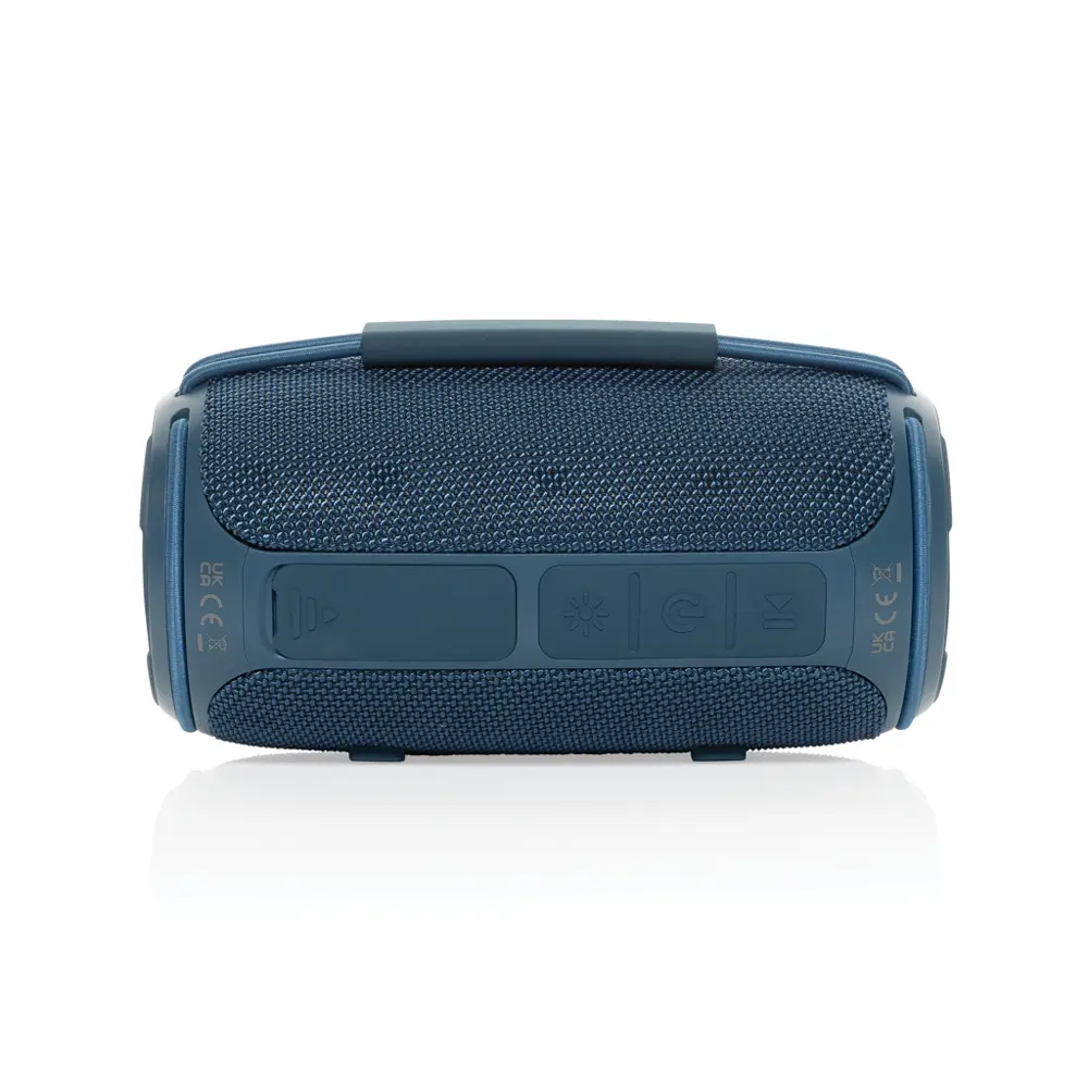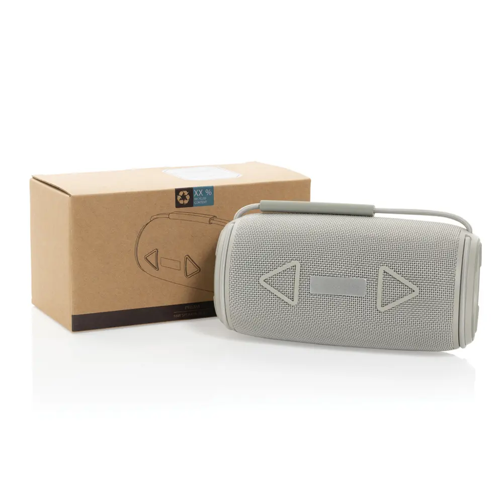 Dankzij de IPX4-certificering is de luidspreker bestand tegen spatwater en lichte regen, perfect voor buitengebruik. De geïntegreerde handgreep verhoogt de draagbaarheid, zodat uw klanten hem eenvoudig meenemen. Kies voor personalisatie met uw logo om uw duurzame engagement te benadrukken en een positieve indruk na te laten.