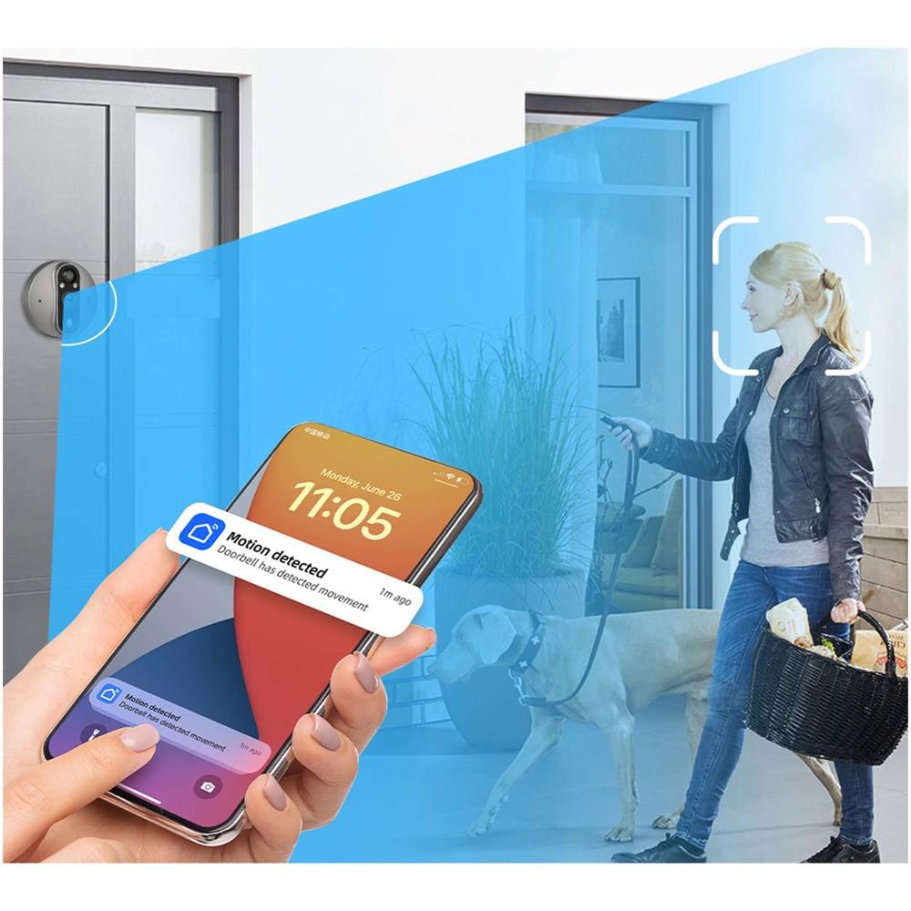 Communiceer moeiteloos met bezoekers dankzij de tweewegaudiofunctie met instelbaar volume voor kristalhelder geluid. De ingebouwde deurbel voegt extra gebruiksgemak toe, terwijl de DV50 na 8 uur opladen tot 3 maanden meegaat – batterijherinnering en automatische uitschakelfunctie zorgen voor optimale efficiëntie.