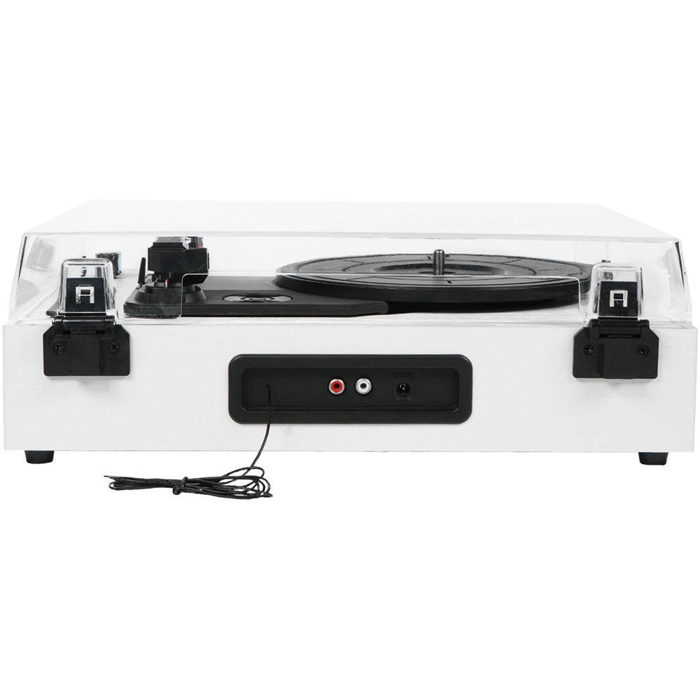 Breng nostalgie tot leven met deze veelzijdige draaitafel die je platen afspeelt en moeiteloos converteert naar digitaal formaat via USB of SD-kaart. Je speelt muziek af via bluetooth, USB, SD-kaart of radio, en geniet van krachtige geïntegreerde speakers van elk 5 W voor een uitstekende geluidskwaliteit. De RCA-audio-uitgang biedt extra connectiemogelijkheden, en de meegeleverde 45 tpm-adapter past perfect bij verschillende plaatformaten.