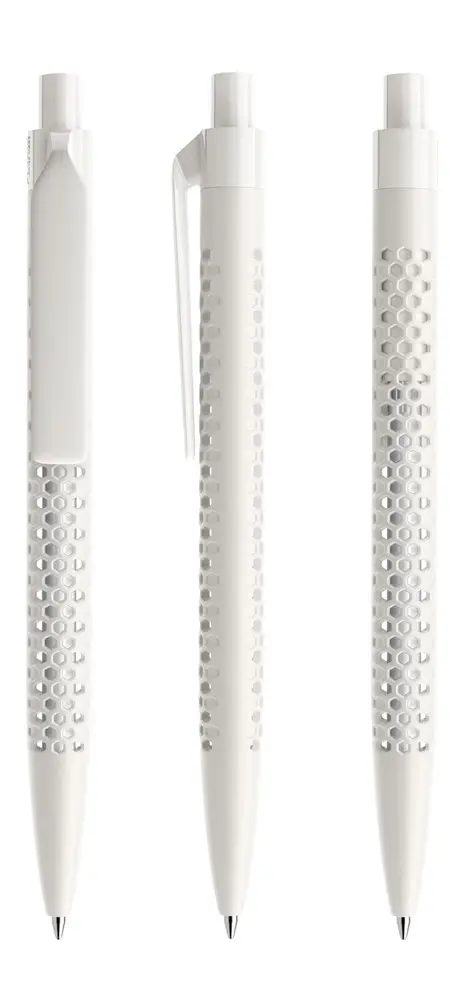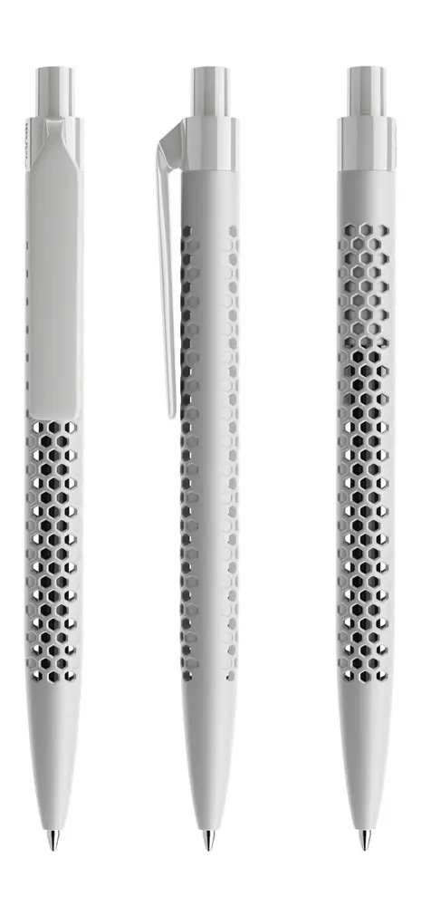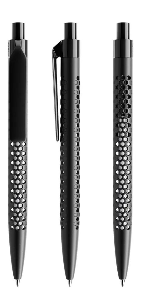 De Prodir QS40 Air is een innovatieve pennenhouder die 60% minder plastic gebruikt en 100% meer lucht integreert, voor een duurzame en esthetische uitstraling. De ritmisch geperforeerde honingraatstructuur zorgt voor een driedimensionaal oppervlak met een duidelijk zicht op de binnenkant, ideaal voor opvallende personalisatie met uw logo.