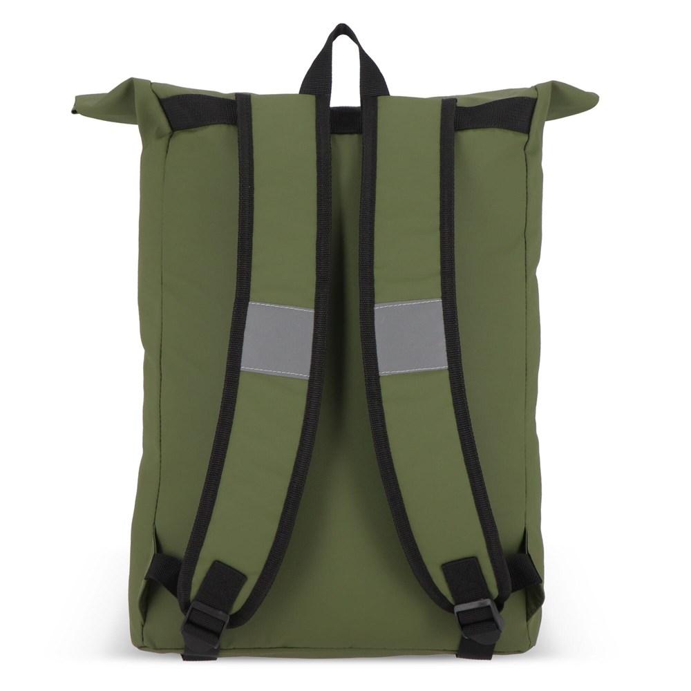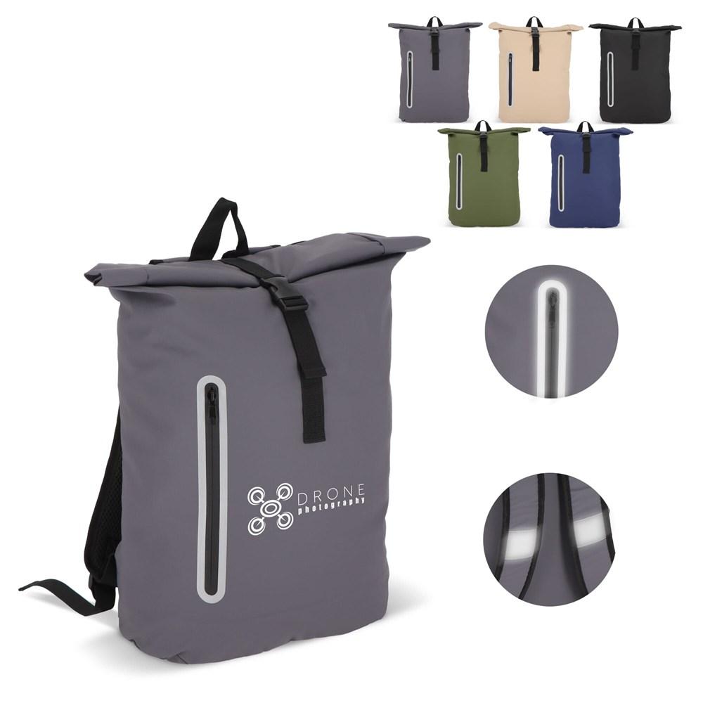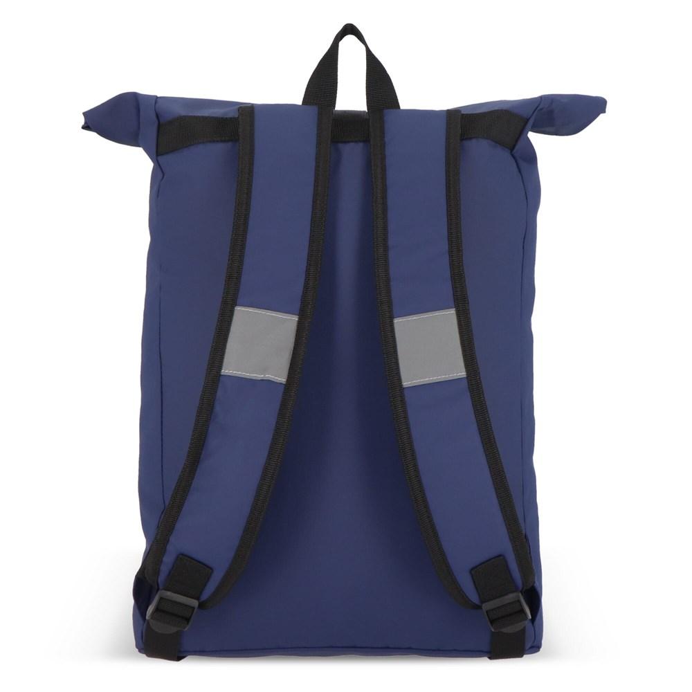 Deze rugzak met roltop is gemaakt van gerecycled PET met PU-coating in 600D-materiaal. Voorzien van reflecterende strips op de schouderbanden en rond het voorvak voor extra veiligheid in het donker. Met handvat, verstelbare gewatteerde schouderbanden en een gewatteerd laptopvak.