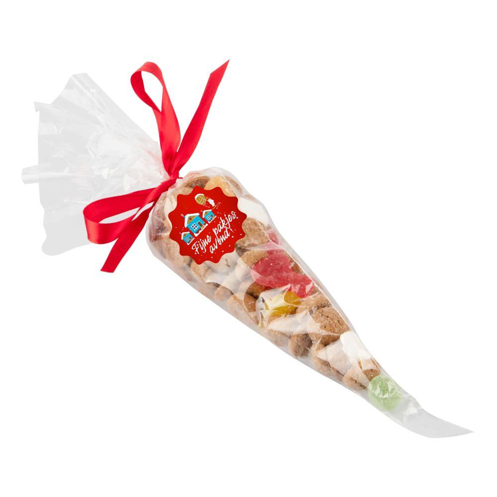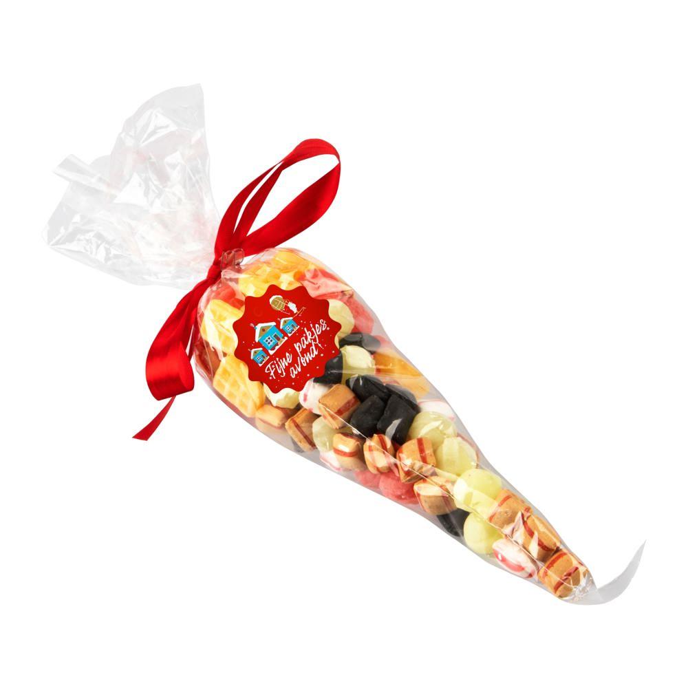 Transparante puntzak gevuld met ca. 250 gram Oud Hollandse mix en full colour sticker op één zijde