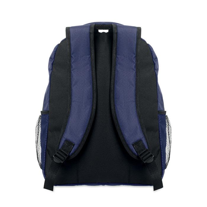 Laptoprugzak 15inch van 600D RPET polyester met gewatteerd laptopvak binnenin, meshvakken aan beide zijden en voorvak met rits.