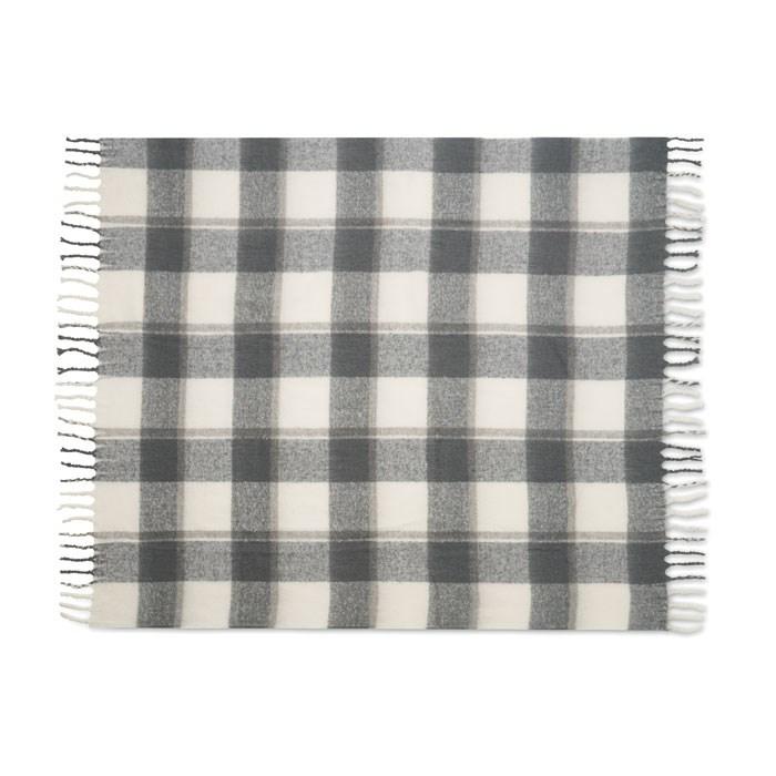 Ruitjesdeken van mohair RPET polyester met handafgewerkte kwastjes. Verpakt in lint en bedrukbare kaart.