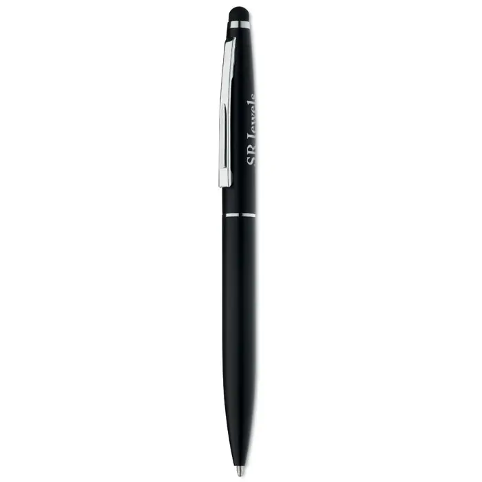 Ontdek deze aluminium balpen met geïntegreerde stylusfunctie, ideaal voor moderne communicatie. Met een draaimechanisme en soepele inktvulling biedt deze pen een betrouwbare schrijfervaring gecombineerd met touchscreen-bediening.