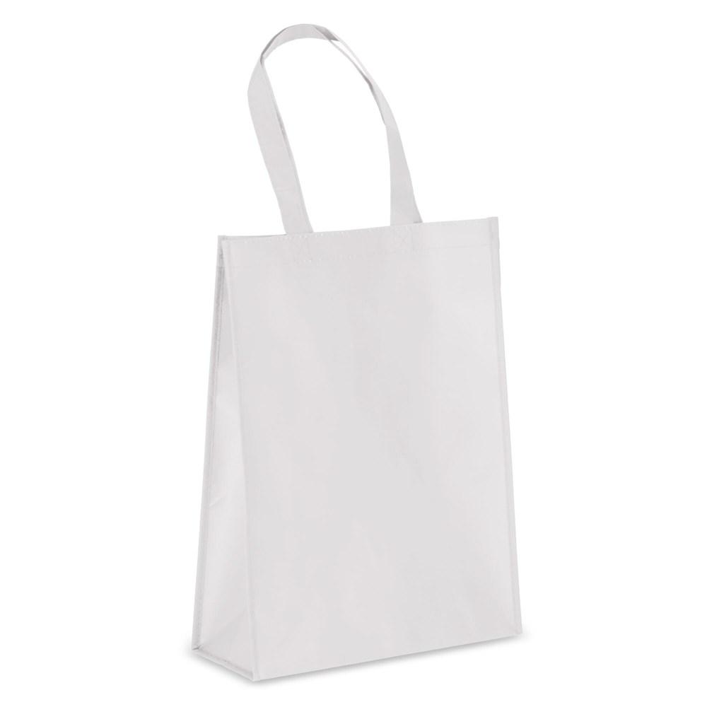 Draagtas gemaakt van 70% gerecycled gelamineerd non-woven materiaal. Voorzien van stevige gestikte handvatten en een ruime binnenkant, ideaal voor dagelijks gebruik. Het duurzame alternatief voor gelamineerde non-woven tassen.