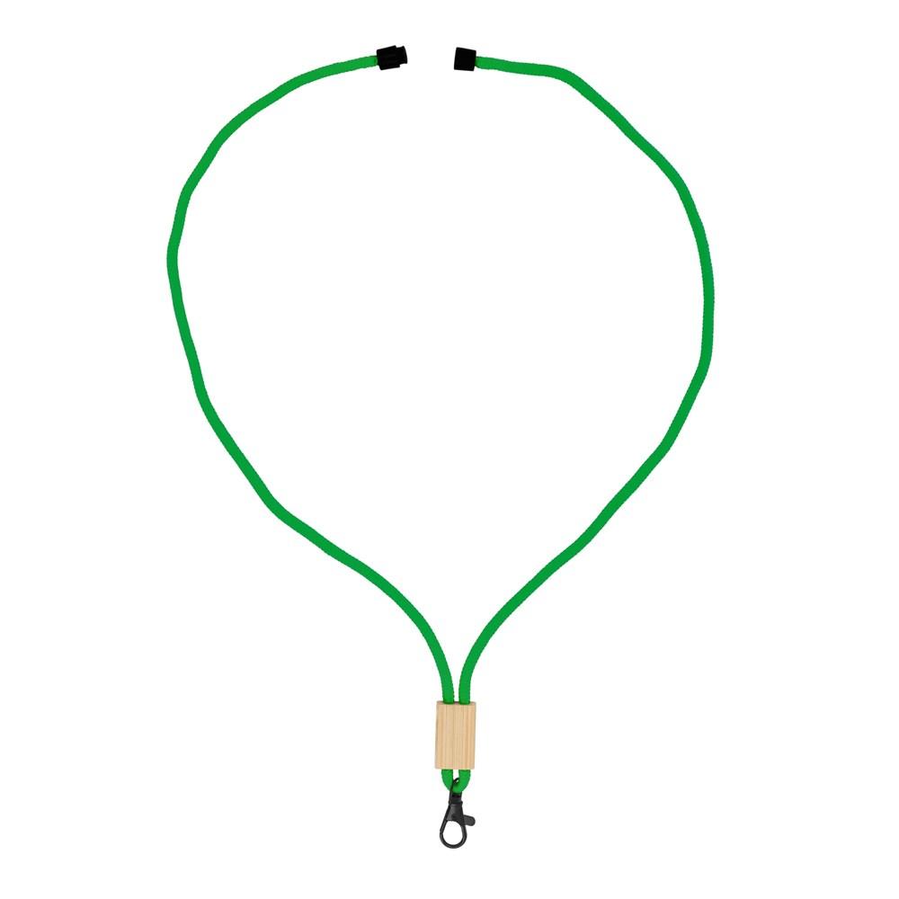 Lanyard gemaakt van R-PET paracord met plastic veiligheidsaansluiting en zwarte accenten. De keycord is verstelbaar met de bamboe slider die voldoende ruimte biedt voor branding.