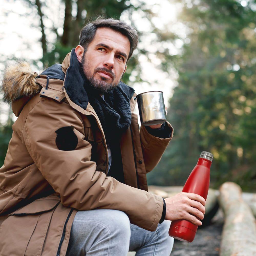 Onze populaire Swing fles is nu verkrijgbaar in gerecycled roestvrij staal. De dubbelwandige vacuüm geïsoleerde fles houdt dranken langdurig koud of warm en is lekvrij voor gebruik onderweg.