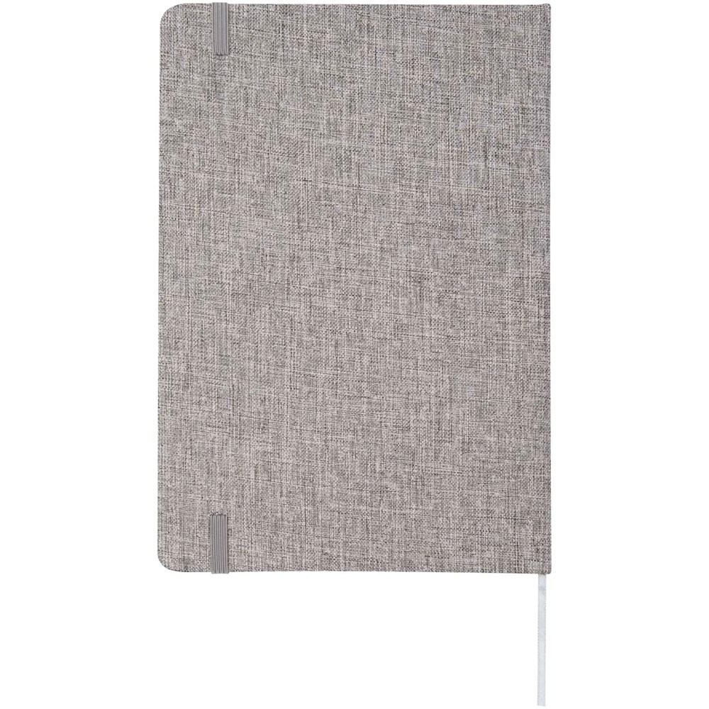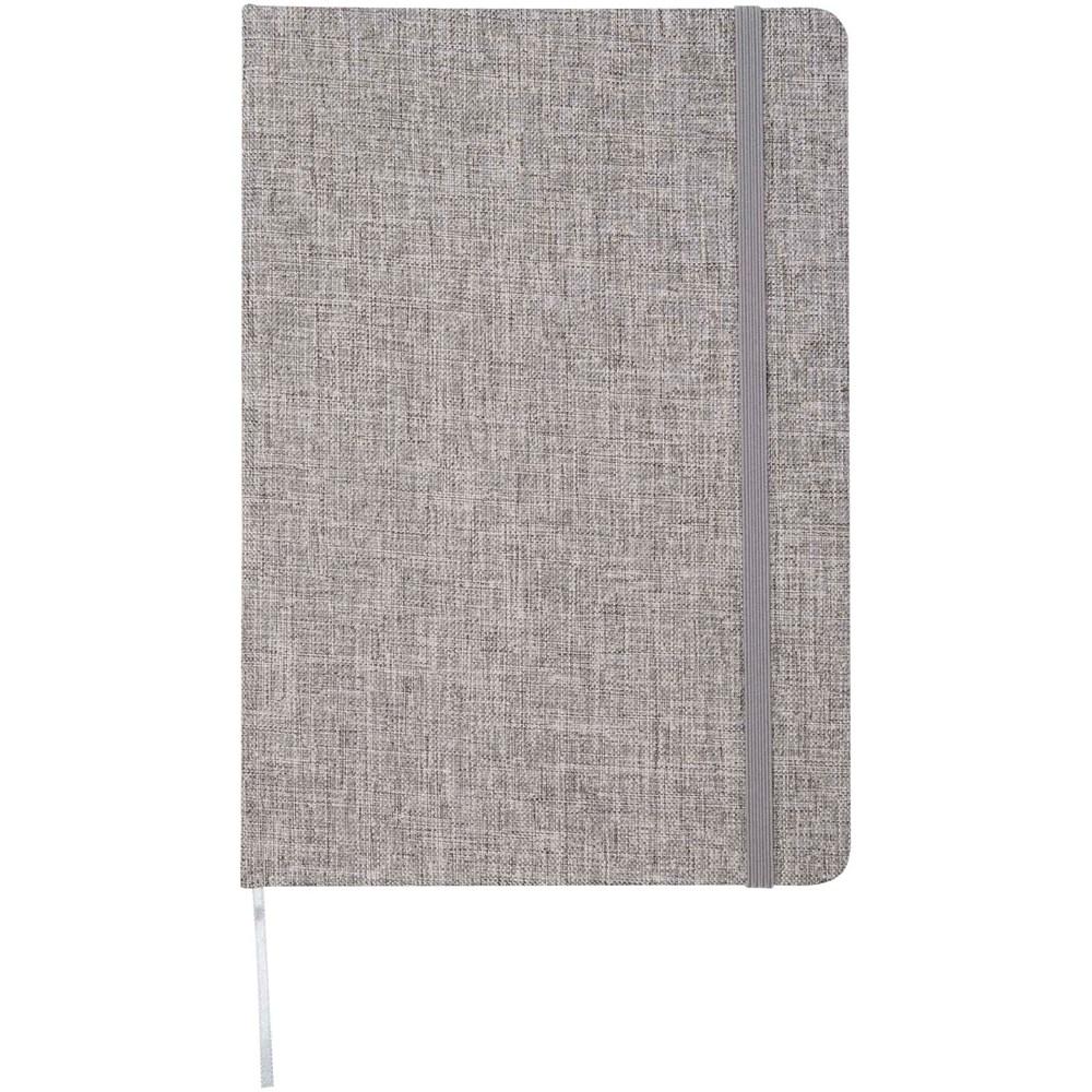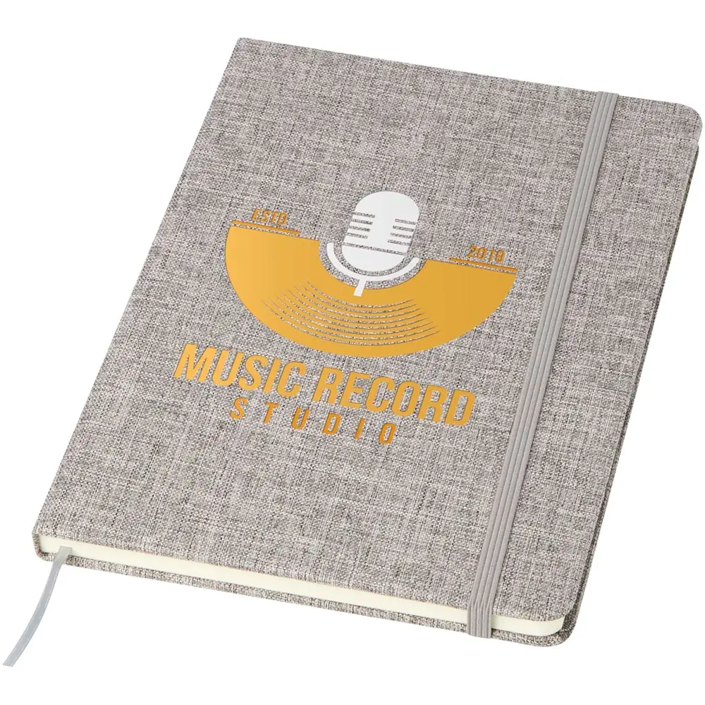 Ontdek ons A5-notitieboek met harde kaft, vervaardigd uit gerecycled katoen. Dit praktische relatiegeschenk biedt u 80 gelinieerde vellen papier van 70 g/m², ideaal voor notities tijdens meetings of events. Met een elastische sluiting, lint en afgeronde hoeken zorgt het voor gebruiksgemak en een professionele uitstraling.