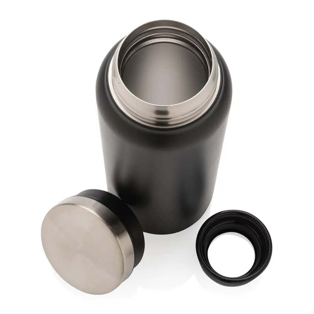 Ontdek deze hoogwaardige vacuümfles, ideaal als gepersonaliseerd relatiegeschenk. Met RCS-certificering en 77% gerecycled materiaal ondersteunt u duurzame praktijken en versterkt uw bedrijfsimago bij klanten en partners. Personaliseer hem met uw logo voor een blijvende indruk tijdens events of als reclameartikel.