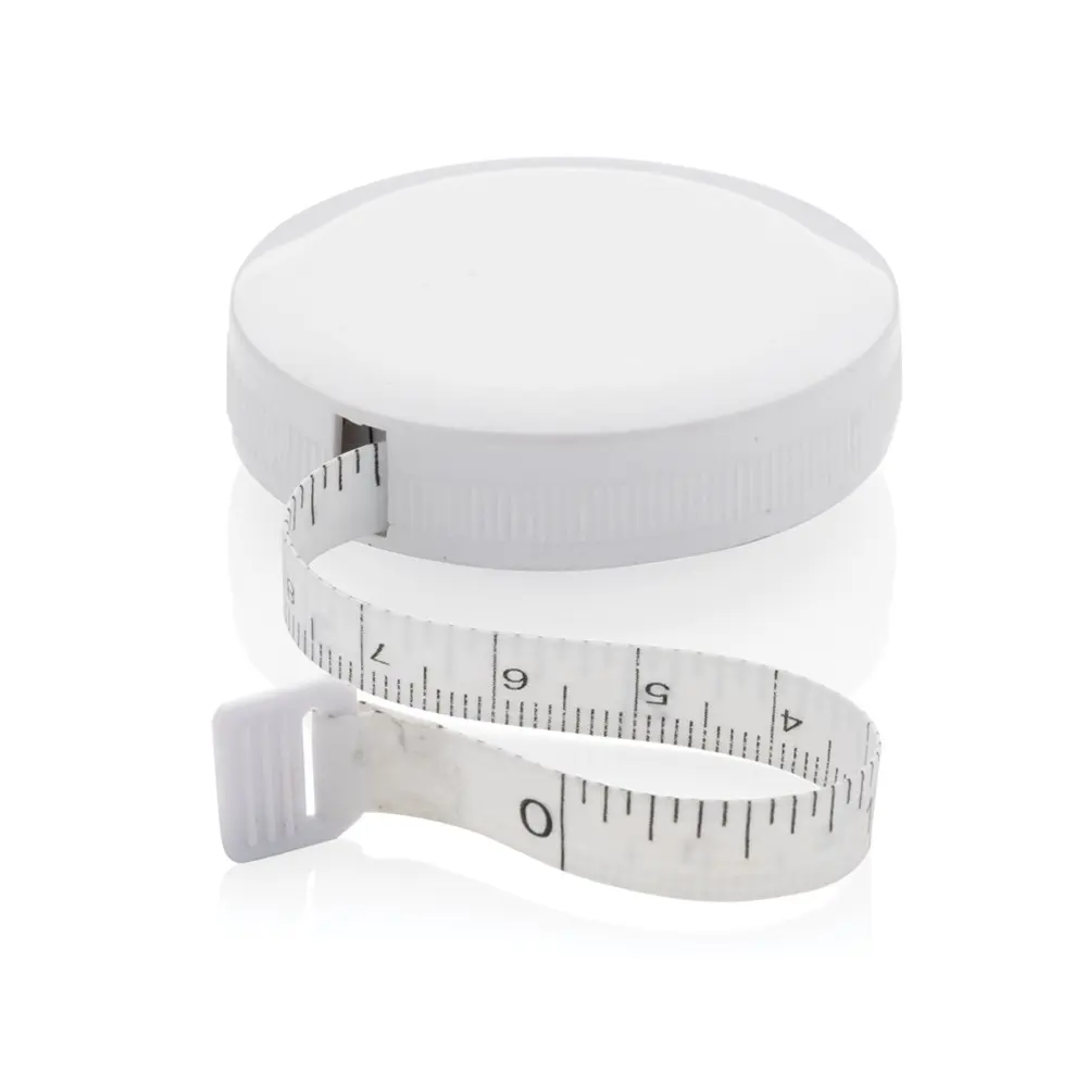 Ontdek ons praktische meetlint van 1,5 meter, ideaal als relatiegeschenk met logobedrukking. Gemaakt van RCS-gecertificeerd gerecycled ABS-plastic en glasvezel, met een totale gerecyclede inhoud van 64 procent. Dit intrekbare lint van 8 millimeter breed is eenvoudig te bedienen met een terugduwknop en geschikt voor fitness en mode.