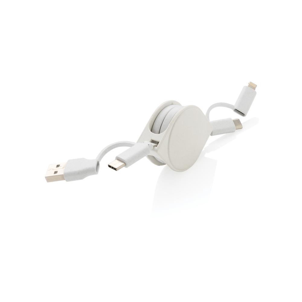 Ontdek de veelzijdige 6-in-1 intrekbare kabel, perfect als gepersonaliseerd relatiegeschenk met jouw logo. Gemaakt van RCS-gecertificeerd gerecycled ABS-plastic voor de behuizing en gerecyclede TPE-draad, voldoet hij aan strenge normen voor duurzame materialen in de hele keten. Volledig PVC-vrij, dus ideaal voor eco-bewuste marketingacties.