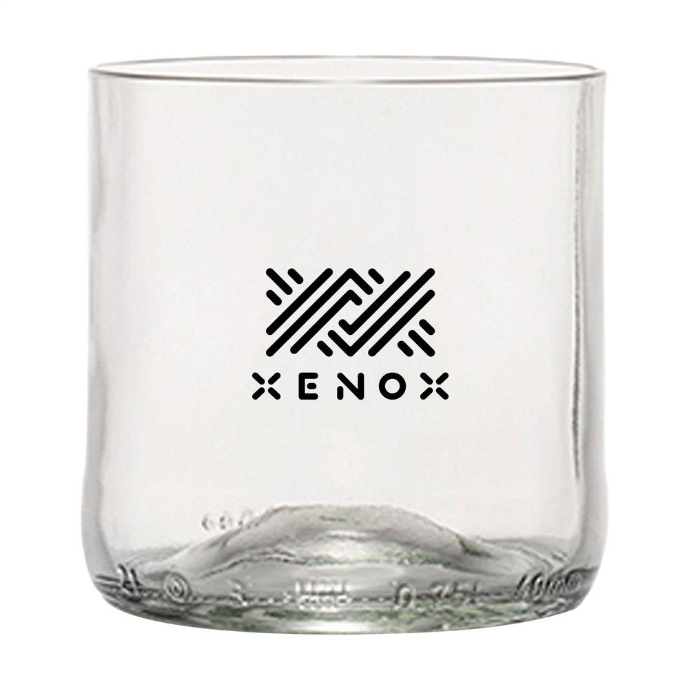 Ontdek dit stijlvolle drinkglas, gemaakt van een opgecycelde wijnfles. Je herkent meteen de originele vorm, wat het een eyecatcher maakt voor jouw events of als relatiegeschenk.