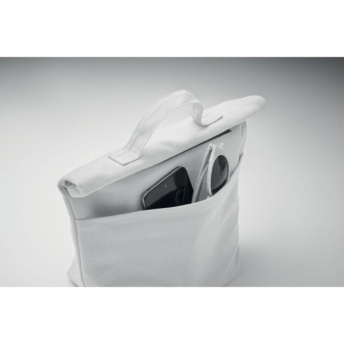 Geïsoleerde lunchkoeltas van gerecycled katoen met rolltop en klittenbandsluiting. Isolatie: 3mm PE-schuim met 12C PEVA.