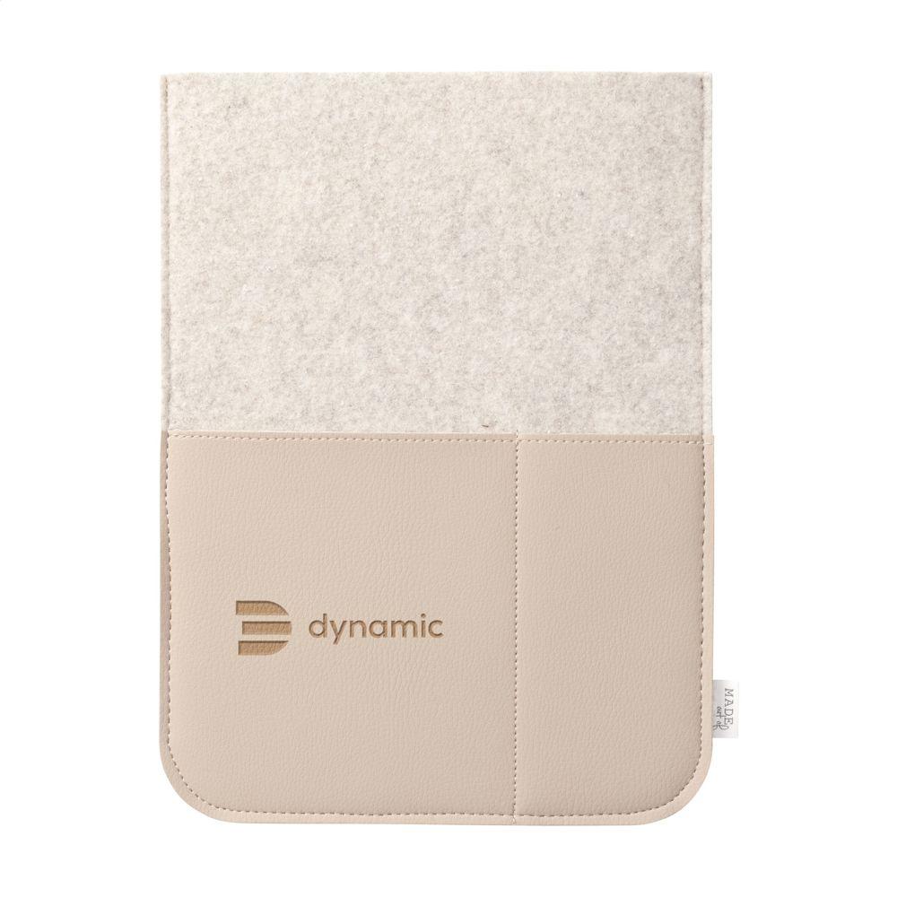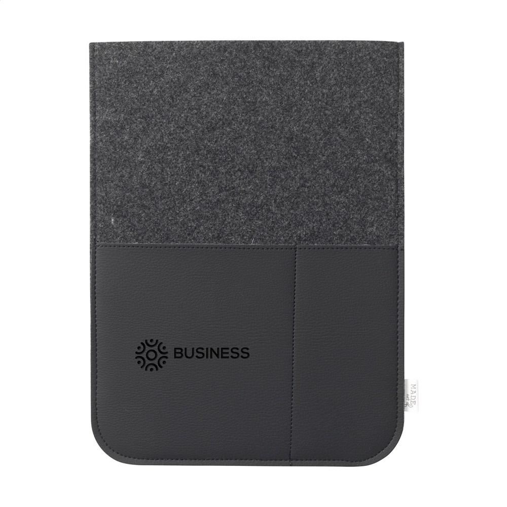 Een eenvoudige maar stijlvolle 14 inch laptop sleeve gemaakt van gerecycled wolvilt en vegan leer. Een product van het merk MADE out of. Het wolvilt is vervaardigd uit 50% gerecycled materiaal, 30% wol en 20% PE. De sleeve heeft 2 insteekvakken aan de voorzijde. Deze zijn gemaakt van mooi vegan leer dat gemaakt is van gerecycled appelpulp. Het heeft de look and feel van echt leer en ze geven de sleeve een luxe uitstraling. Geschikt voor het opbergen en veilig vervoeren van een laptop tot 14 inch. Dit topproduct is handgemaakt. Dutch design. Made in Holland.