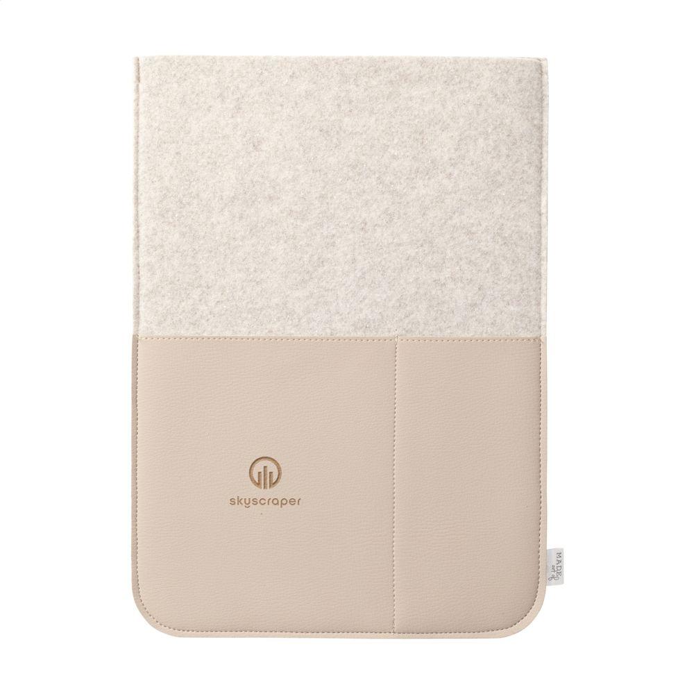 Een eenvoudige maar stijlvolle 16 inch laptop sleeve gemaakt van gerecycled wolvilt en vegan leer. Een product van het merk MADE out of. Het wolvilt is vervaardigd uit 50% gerecycled materiaal, 30% wol en 20% PE. De sleeve heeft 2 insteekvakken aan de voorzijde. Deze zijn gemaakt van mooi vegan leer dat gemaakt is van gerecycled appelpulp. Het heeft de look and feel van echt leer en ze geven de sleeve een luxe uitstraling. Geschikt voor het opbergen en veilig vervoeren van een laptop tot 16 inch. Dit topproduct is handgemaakt. Dutch design. Made in Holland.