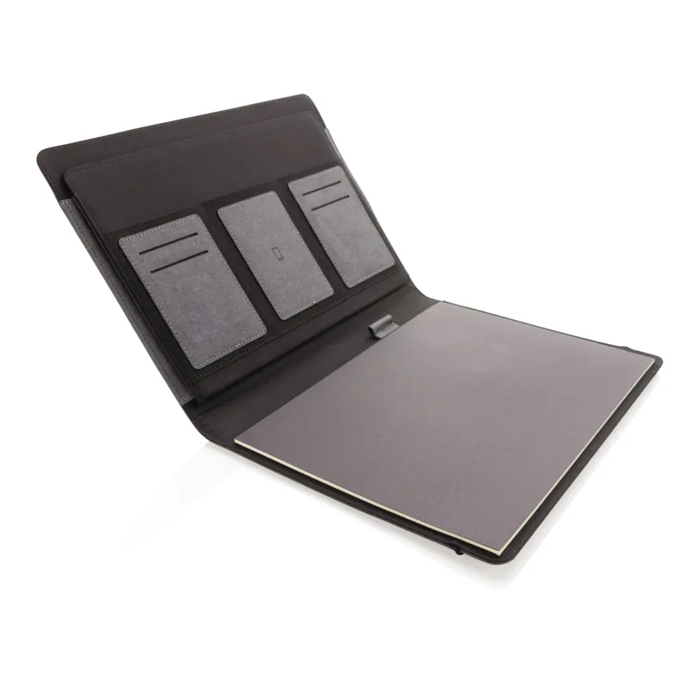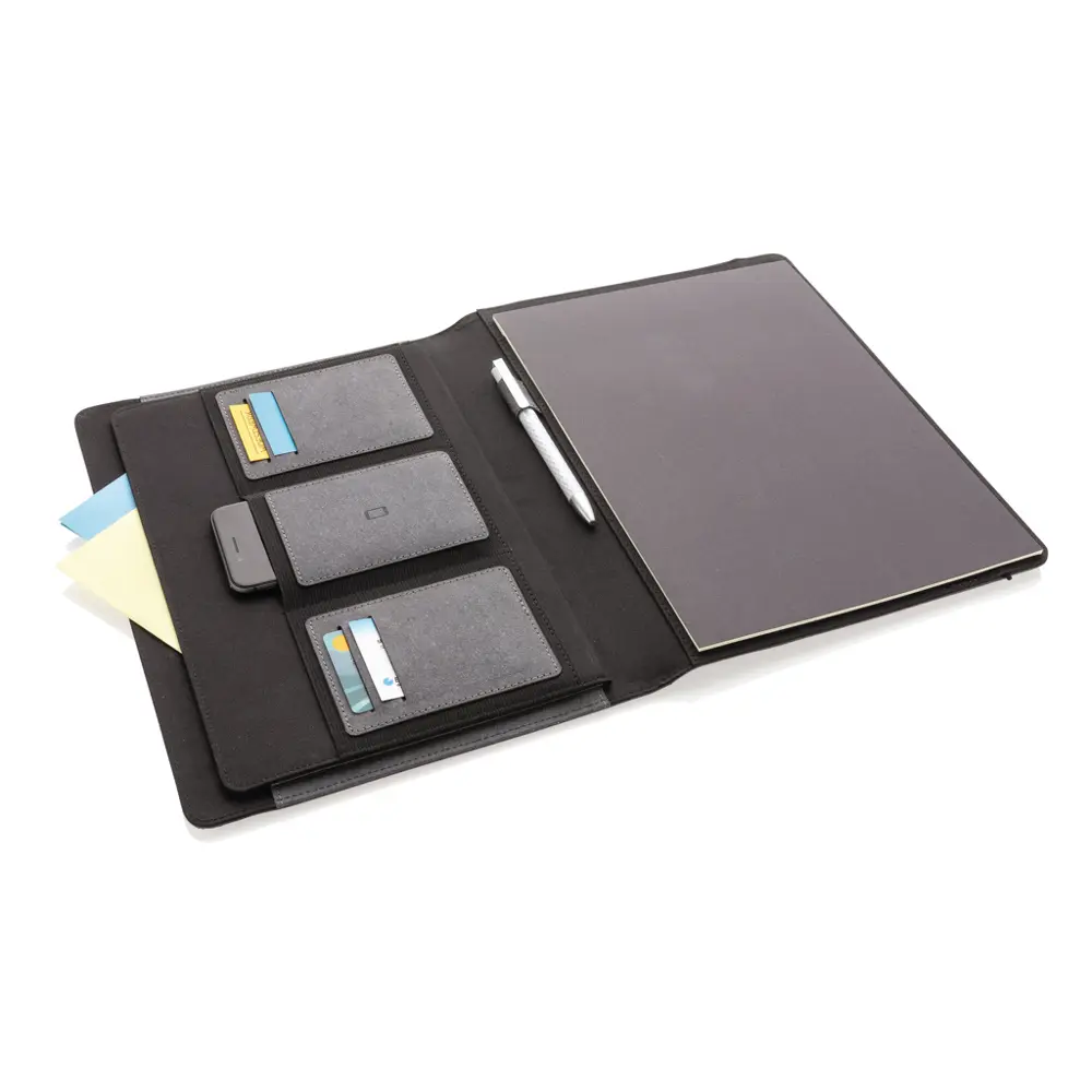 - Praktische opbergmogelijkheden: Bewaar documenten, kaarten en notities veilig met de elastische band, groot insteekvak, drie kleinere vakken en vier visitekaartjeshouders.