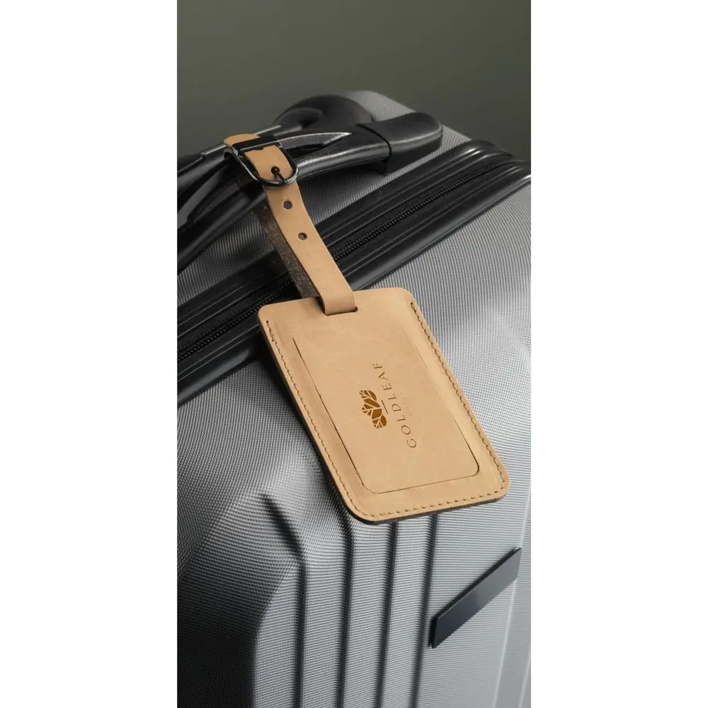 Duurzaam bagagelabel van gerecycled leer