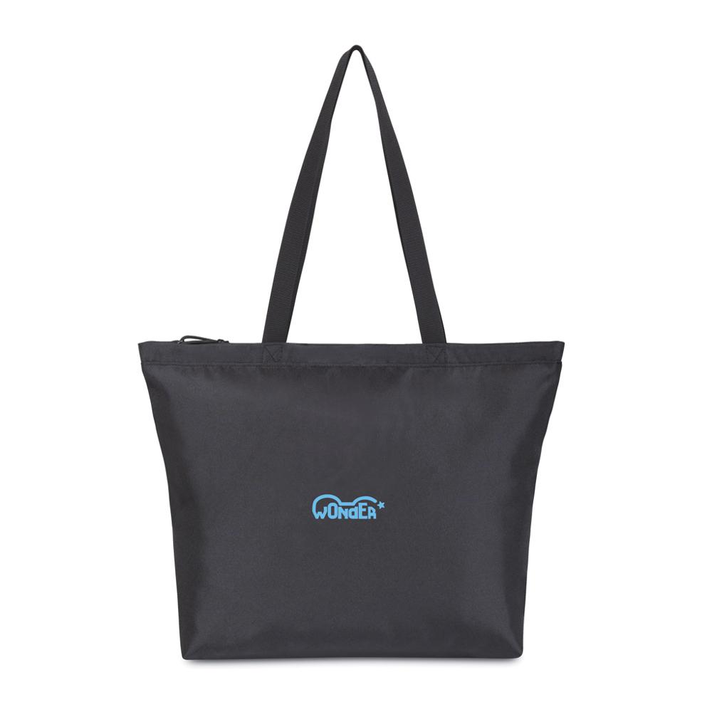 Een moderne en duurzame update van een klassieke tote bag, gemaakt van gerecycled stof en webbing van plastic flessen. Ritsopening naar het grote hoofdcompartiment. Binnenvak voor het opbergen van je drinkfles. Beschikbaar aan beide zijden van de Atlantische Oceaan. Dit item wordt in de VS en Canada ook aangeboden door Gemline.